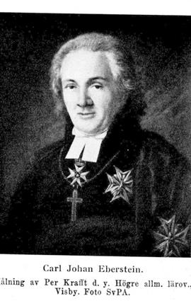 1. Carl Johan Eberstein, f. 28 sept. 1758 på Hansta, V. Vingåkers sn (Söd.), d. 20 jan. 1838 i Visby. Föräldrar: titulärprofessorn, häradsprosten Carl Christian Eberstein och Anna Margaretha Heyn. Student vid Lunds univ. 23 juli 1772; disp. 30 juni 1777 i Greifswald och fil. mag. där s. å.; docent i teologi 29 okt. 1779; notarie i teol. fak. 20 mars 1780; teol. adjunkt och prästvigd 22 sept....
