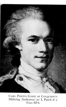 3 Gahn af Colquhoun, Carl Pontus, bror till G 1 o G 2, f 1 mars 1759 i Falun, d 9 maj 1825 i Sthlm (Jak). Inskr vid Uppsala univ 13 okt 1769, volontär vid Dalreg juli 1773, rustmästare 16 sept s å, förare april 1775, stabsfänrik 22 maj s å, sekundlöjtn vid Savolaks reg 5 aug 1778, löjtn vid reg Royal Suédois 22 aug 1779, reg: kvartermästare vid Savolaks reg 20 april 1785,...