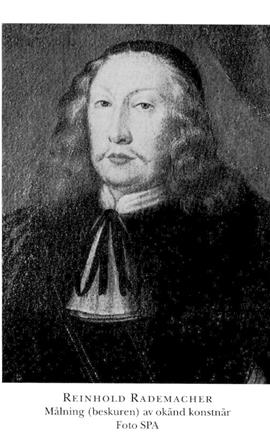 Rademacher, Reinhold, f omkr 1609 i Baltikum, d 4 jan 1668, 59 år gammal (likpred, se Hellberg, s 117). Borgare o köpman i Riga, erhöll priv:brev dels på en finsmidesmanufakturanläggn i Kirkholm (Salaspils), Livland, dels för överflyttn av denna anläggn till Eskilstuna 21 juli 54, anlade o förestod manufaktur i Eskilstuna (Karl Gustavs stad) från 56.