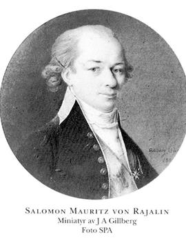 von Rajalin, Salomon Mauritz, f 23, dp 26 aug 1757 i Karlskrona, Amiralitetsförs, d 23 sept 1825 i Sthlm, Kungsh. Föräldrar: viceamiralen o landshövdingen frih Johan v R o Barbara Eleonora v Gertten. Kadett vid Amiralitetet 7 mars 69, sergeant vid Gyllengranatska reg 14 sept 71, fänrik vid arméns flotta 15 juli 73 (fullm 19 febr 77), i brittisk örlogstjänst 76–77, löjtn vid arméns flotta 19 ...