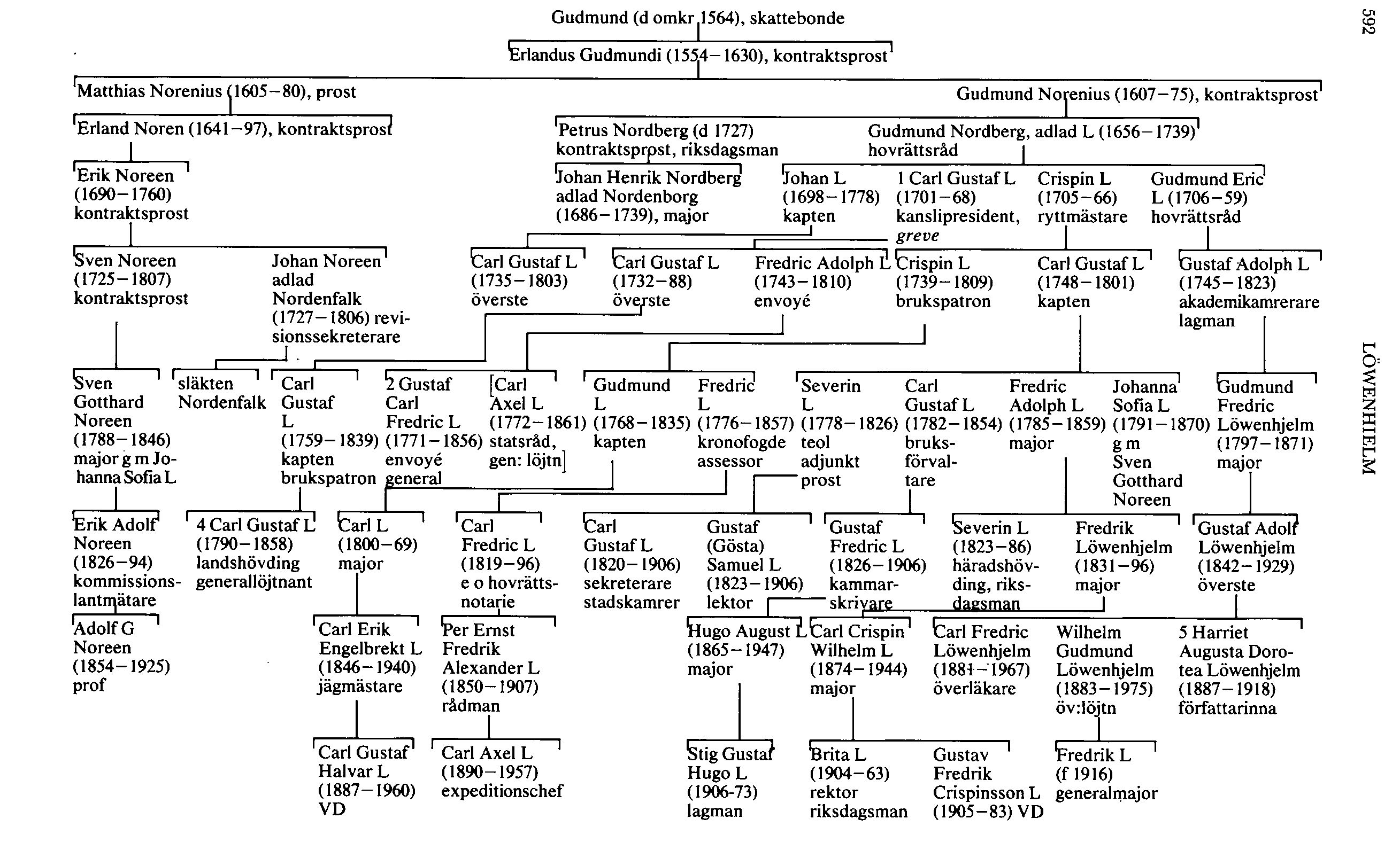 Källor o litt: Allmänt: H 11 (F Fryxell, Värmlands släktbok), I 1 33, KB; Lång, vol 9, UUB; Ulrika Kullgrens stamträd över Erlandus Gudmundis ättlingar med namnregister, GLA; Lignellska saml, vol XVII, Fören Värmlandsarkiv, Karlstad; [P Meijer-Granqvist,] Sv grevar o baroner, av La-zarus v Rothschild, 1 (1931), s 65 ff. Gudmund i Dragatyd: Smålands landskapshandl 1538:3, f 201, 1564:3:2, f 113, 1564:3:4, f 38v, 1565:5:2, fll6v, o 1565:5:3, f 38v, Genealogica 109: Noors-stammen, RA; X 17 (A A v Stiernman, Svecia illustris), UUB; Carl Axel L, Min lefvernes beskrifn (1923), s 10. Erlandus Gudmundi: E 16 (familjeant:ar på bakre pärmens insida), UUB; Gudmund L, Brevis et vera prosopographia M Erlandi Gudmundi ... (Karlstads stifts- o läroverksbibl:s handskriftssaml: Biografi m m, vol 11), Folkrörelsernas arkiv för Värmland, Karlstad; Karlstads hm, 4 (1970); H Kjellin, Kyrkor i Grums härad, Norra delen (Sveriges kyrkor, Värmland, 1:1, 1924), s 90 f; A Noreen, Släkten Noreen från Värmland (1917); Strängnäs hm, 4 (1901). Matthias Norenius: Acta ecclesiastica, vol 16: Nor, RA; Karlstads hm, 4 (1970); Kjellin, a a, s 88, 91 f; Noreen, a a; Värmlands nation i Uppsala från år 1595, 1 (1939-60), s 32. Släkten Noreen; Noreen, a a; Omberg, 6 (1890); Sv släktkal 1938 (tr 1937). Gudmund Norenius: Biographica, RA; Diarium Gyllenianum (1882); Karlstads hm, 4 (1970); Noreen, a a; Värmlands nation i Uppsala från år 1595, 1, s 32 f. Petrus Nordberg: Karlstads hm, 5 (1973); Noreen, a a; PrRP 4 (1962); Värmlands nation i Uppsala från år 1595, 1, s 195 f. Gudmund L: Biographica, Adelsbrev, vol 22, Sköl-debrevsaml, RA; S Carlsson, Ståndssamhälle o ståndspersoner 1700—1865 (1949); Lags o doms; Noreen, a a; A Noreen, Ant:ar om K Hallands reg (f d Västgötadals) åren 1625-1910 (1911); [J Odencrants,] Kongl Götha hofrätts presidenter, ledamöter o betjäning (1803); A S[öder]b[o]m, Ur Strömstads hist (1902), s 40; Å Wiberg, Apertin (1960); Värmlands nation i Uppsala från år 1595, 1, s 197 f. Carl Gustaf L (d 1788): Biographica, M 1110, RÅ; F Alsterlind, Den gamla kyrkplatsen (1955); L Dalgren, 1719-1815 (Karlstads stads hist, 2, 1939); E Fernow, Beskrivn över Värmland, 1 (1977), s 389; E Herlenius, Sant o sägen om "Grevinnan på Apertin" (Värmland förr o nu 1920); F Lilljekvist, Apertin (Sv slott o herresäten vid 1900-talets början, Värmland, 1914); Carl Gustaf L, Minnen, 1 (1927), s 8, 10 f; Malmström; C O Nordensvan, Värmlands reg:s (Närkes o Värmlands reg:s) hist, 2 (1904); C G Plåten, Kongl skånska dragonreg:s hist (1901); W Ridderstad, "Gula gardet" 1526-1903 (1903); G v Schoultz, Apertin (Slott o herresäten i Sverige. Västergötland, Dalsland, Värmland, 2, 1968), s 226, 234; Wiberg, a a. Carl Gustaf L (d 1839): M 1110, RA; Lång, vol 52 (bouppt), UUB; Alsterlind, a a; H E Charlotta, Dagbok, 2 (1903); G Ekman, Ur Storforsverkens hist (1921); H Gillingstam, Den skånsk-norrländska släkten Svenonius (1966); [C F Lindahl,] Sv millionärer, [5] (1900), s 341 ff; Long (Sv slott o herresäten vid 1900-talets början, Värmland, 1914); Carl Gustaf L, a a, särsk 1, s 11 IF, 135 ff, 157, 3 (1929), s 66 f; Ridderstad, a a;.E Tegnérs brev, 10 (1970), s 248; Wiberg, a a; S Överström, Bilder ur Kroppa sockens hist (1947), s 205 -210, 213, 216 f. Fredric Adolph L (d 1810) o Augusta Fersen: Biographica, Hollandica, vol 990: 5 nov 1805 o 1Q02: 27 okt 1805, Bergskolhs arkiv A I: 160, 161, 164, 169, B III: 50, 52, E IV: 299, Svea hovrätts renov småprot, vol 115, f 107 f, P Sondéns ms K kansliets ämbets- o tjänstemän samt vaktbetj 1714—1801, Ericsbergsarkivet: autografsaml o Carl XIILs saml: brev 11 juni 1788, kopia av register över Rånäs arkiv, RA; 11 33, KB; A Ahnfelt, Ur sv hofvets o aristokratiens lif, 5 (1882), s 55, 58, 130; I Carlsson, Frihetstidens handskr polit litt (1967), s 105 f; H E Charlotta, Dagbok, 1, 2, 5 (1902-23); B Dahlström, Rikets gäld 1788-92 (1942), s 302 f, 310-13, 340 ff, 348-51, 354-58, 794, 798, 800; G J Ehrensvärd, Dagboksant:ar lörda vid Gustaf III:s hof, 1 -2 (1878); N Erdmann, Hemma o borta på 1700-talet (1925), s 9 ff, 16 f, 46 - 94; A v Fersen, Dagbok, 1 (1925), s 435, 2 (1926), s 19, 128, 271 f, 387, 3 (1928), s 54, 174, 183, 220, 250, 271, 4 (1936), s 10, 34, 45, 53, 236, 396; F A v Fersen, Hist skrifter, 3 (1869), s 117, 179, 6 (1870), s 133 f; C Forsstrand, De tre gracerna (3. uppl, 1912); T M Fries, Linné, 2 (1903), s 295 f; H Gillingstam, Ur Rånäs 1700-talshist (ms antaget för publ i Norrtelje tidn); A Grape, Ihreska handskriftssaml, 1—2 (1949); S Grauers, Ätten Wachtmeister genom seklerna, 1 (1941); R F Hochschild, Memoarer, 1 (1908), s 110 ff, 245, 3 (1909), s 127, 279; G Iverus, Hertig Karl av Södermanland (1925), s 86, 109; S Johnson, Sverige o stormakterna 1800—04 (1957); 5 Klemming, Gustaf Carl Fredrik L (1956), s 11 — 14, 19, 65; C A Klingspor, Rånäs (dens o B Schle-gel, Uplands herregårdar, 1881), sp 12; P-A Lange, Anders Håkansson som politiker o ämbetsman 1789-1800 (1940); Lindahl, a a, s 354 ff; Carl Axel L, a a, s 9, 20, 28 f, 31, 33, 47, 121; Carl Gustaf L, a a, 1, s 8, 10 f; J W Nilsson, De diplomatiska förbindelserna mellan Sverige o Frankrike under Gustaf IV Adolf (1899), s 9-15, 19 ff, 41, 81-85; P Norberg, Gästriklands hyttoro hamrar (1959), s 191; C G Nordin, Dagboksant:ar för åren 1786-92 (HH 6, 1868), s 2; Odhner, 2 (1896), s 347, 522, 525, 528; Repertorium der diplomatischen Vertreter aller Länder, 3 (1965); [A F Ristell,] Anekdoter om konung Gustaf III:s hof o regering (1820), s 36 ff; H Rosman o A Munthe, Släkten Arfwedson (1945); Sv memoarer o bref, 4 (1901); W Swalin, Bidr till K M:ts hofs personalhist under det senaste århundradet (1888); S G Svenson, Gattjinatraktaten 1799 (1952); C Tersmeden, Memoarer, 5 (1918), s 136 f, 6 (1919), s 133, 143, 296; C-G Thomasson, Crusen- stolpe o den hist kritiken (GHT 15 juli 1941); S Tommos, The Diplomatica collecti