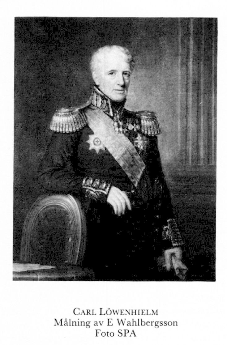 3 Löwenhielm, Carl Axel, halvbror till L 2, f 3 nov 1772 i Sthlm, Hovf, d 9 juni 1861 där, Klara. Föräldrar: Karl XIII o Christina Augusta Fersen, g m hovkanslern greve Fredric Adolph L. Fänrik vid livg 8 maj 78, löjtn där 17 april 83, inskr vid univ i Strasbourg 85–87, tjänstg vid gardet 88, kapten där 18 maj 91, legationskavaljer i Konstantinopel sept 91–95, stabskapten 16 juli 92, kompanichef 30 maj 94, kammarherre hos drottningen 2 nov 95, major vid Svea livg 3 nov 97, sekundmajor vid Svea livg 19 febr 01, premiärmajor där 20 okt 01, överadjutant hos kungen 7 maj 08, överstelöjtnant vid Kronobergs reg 18 jan 09, kabinettskammarherre 8 juni 09, deltog i samtliga riksdagar 09–60 (utom 15), överste o chef för Västgöta Dals reg 30 april 11, generaladjutant 14 jan 12, underkansler vid KMO 23 nov 12, envoyé i S:t Petersburg 1 sept 12–18, generalmajor 28 jan 14, plenipotentiär vid Wienkongressen dec 14, generallöjtn:s n h o v 15 aug 15, chef för åttonde infanteribrigaden 11 juni 16–2 nov 24, överstekammarjunkare 24 juni 16, tf president i krigskoll 26 okt 19, led av komm ang förbättrad fångvård nov 20–mars 23, statsråd 19 mars 22–21 juni 39, led av finanskomm 22–23, ordf i k dir för Eskilstuna fristad 24, generallöjtn 2 nov 24, ordf i styr för fängelserna o arbetsinrättn:arna 3 febr 25–14 febr 26, led av komm ang lönestat för indelta arméns befäl juni 26–okt 28, ordf i komm ang ny organisation av krigskoll sept 28–juli 29, led av komm ang organisation av förvaltn av sjöärendena sept 28–jan 32, ang grunder för gevärstillverkn i riket mars 33–april 35, ordf i tabellkommissionen 21 sept 38, v kansler vid KMO 28 april 51, kansler där 28 april 56–22 nov 58, avsked ur krigstjänst 22 aug 56. – LKrVA 07, serafimerriddare 24.