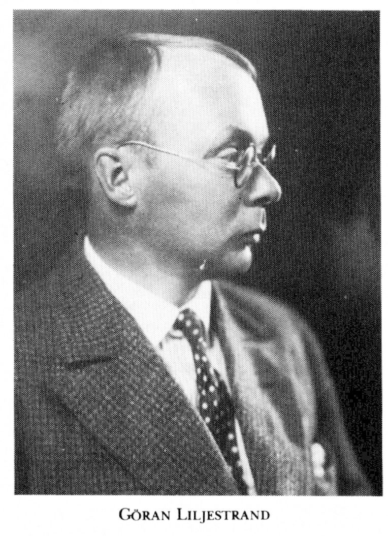 Liljestrand, Göran, f 16 april 1886 i Gbg, Masth, tl6 jan 1968 i Sthlm, Västerled. Föräldrar: försäkr:dir Peter Erik L o Tekla (Titti) Carlberg. Mogenhetsex vid h a reallärov på Norrmalm, Sthlm, 18 maj 04, inskr vid StH ht 04, med fil ex där 14 juni 05, amanuens vid KI:s med kem inst 1 sept 06—31 aug 07, MK 27 febr 09, tf laborator i fysiologi vid Kl periodvis 10—27, amanuens vid farmakolog inst där 1 sept 15—31 aug 18, ML 29 maj 15, disp 29 maj 17, MD 31 maj 17, doc i fysiologi vid Kl 10 sept 17, sekr i KI:s Nobelkomm 18-60 (led 38-50), i Fysiolog fören i Sthlm 19—30, sekr i nämnden för Sv sällsk för med forskn från 20, doc i fysiologi o farmakologi vid Kl 27 april 23, prof i farmakologi o farmakodynamik där 2 dec 27-1 juli 51, led av komm ang nya byggnader för GCI dec 27—dec 28, ang GCI:s omorganisation juni 31—febr 32, led av Medicinalstyns vetensk råd 31—48, av styr för centralförb för nykterhetsundervisn 33—48, av Medicinalstyns specialistnämnd 34—38, av näringsrådet 36—54, av komm ang Statens inst för folkhälsan juni 36—sept 37, av komm ang livsmedelsstadga okt 36—juli 41, led av dir för GCI 38-42, v ordf i styr för Statens inst för folkhälsan 38—42, led av komm ang docentinstit juni 38—sept 39, red för Acta physiologica Scandinavica 40—57, ordf i Sv läkaresällsk 45-46. - LVA 38, LFS 39, fil hedersdr vid StH 30 maj 52.