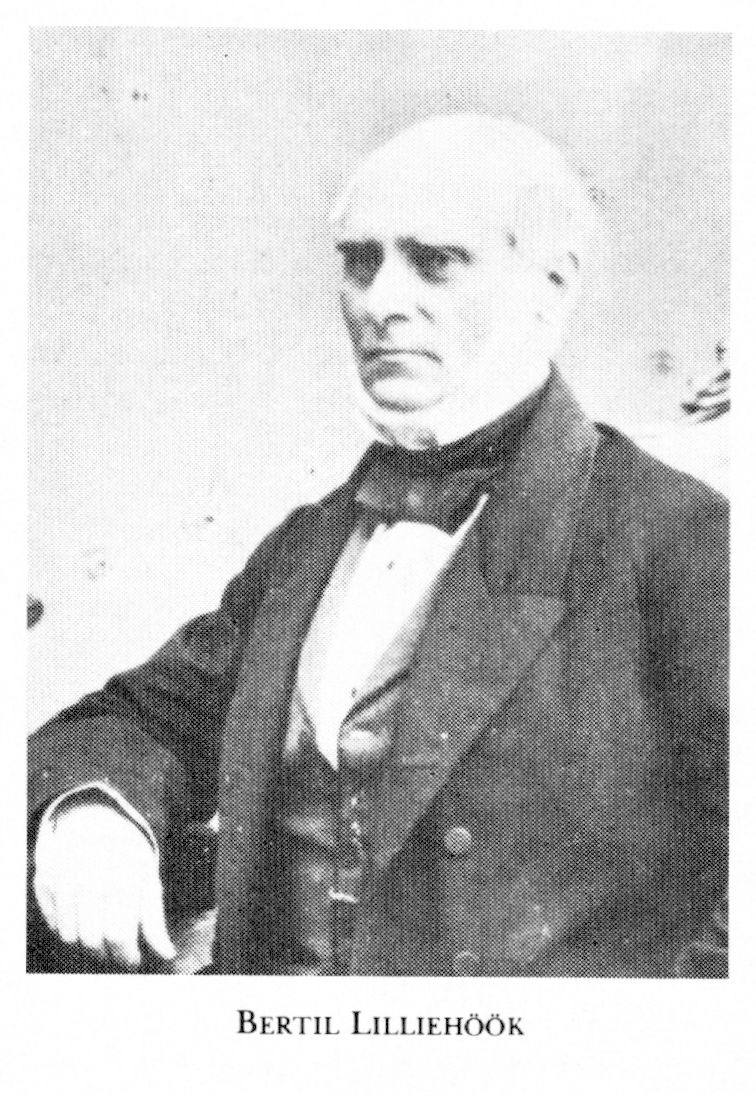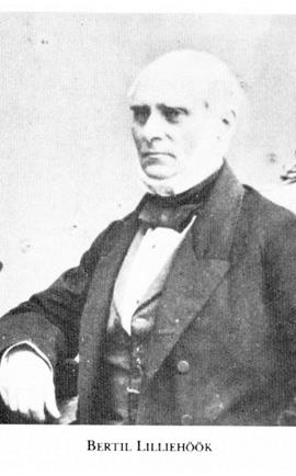 8 Lilliehöök, Carl Barthold (Bertil), f 7 nov 1809 på Sällerhög, Asklanda, Älvsb, d 2 mars 1890 i Gränna. Föräldrar: kaptenen Anders Johan L o Charlotta Lovisa Stuart. Sergeant vid gbgseskadern av arméns flotta 28 febr 23, styrmansex 23 april 24, kadett vid Karlberg 27 sept 24, utex 7 mars 28, sekundlöjtn vid flottan 10 april 28, tjänstg på nordamerikanska handelsfartyg aug 29—okt 33, genomgick h art: lärov på Marieberg 1 okt 35—maj 38, åtföljde fransk vetensk exp till Spetsbergen o norra Skandinavien 24 maj 38—1 juli 39, lär i fysik vid h art:lärov på Marieberg 1 okt 39—1 april 46, premiärlöjtn 20 aug 40, kaptenlöjtn 2 febr 47, deltog i riksdagarna 44/45 o 53/54-65/66 (statsutsk 53/54 o 56/ 58, förstärkta KU 56/58, förstärkta bankoutsk 56/58 o 65/66, förstärkta lagutsk 56/58), led av komm ang Kungsholms fästn:s försvar maj 49, tygmästare i Karlskrona 29 juni 49—52, kapten 25 febr 52, led av förvaltn av sjöärendena 4 maj 52—64, av komm ang krigsundervisn dec 53—mars 54, av krigshovrätten 1 jan 54—58, kommendörkapten 26 aug 56, led av komm ang militära hälsovården juni—nov 58, riksbankofullm 24 juli 58—63, led av komm ang undervisn:anstalterna vid flottans stationer nov 58, ang art:exercisreglemente nov 58, ang bestyckn:plan för Karlskrona redd mars 61, ang rikets sjöförsvar juli 61—maj 62, kommendör 19 maj 63, led av stadsfullm i Sthlm 63—70 (led av drätselnämnden 63—66, av beredn:utsk 69—70), ordf i komm ang sjökrigsmateriel sept—okt 63, i styr för Teknolog inst okt 63—febr 71, led av komm ang skjutförsöken mot pansarplåt nov 63, lotsdir 12 april 64—27 aug 75, ordf i komm ang lots- och fyrinrättn jan 70—febr 71, i komm ang meteorolog observationer på sv fartyg okt 75—jan 76. -LÖS 38, LKrVA 43 (andre styresman 73—76), LVA 44 (preses 64/65), HedLÖS 64.