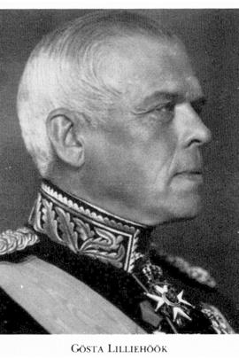 12 Lilliehöök, Gösta, son till L 9, f 19 sept 1871 i Ovansjö, Gävl, d 22 nov 1952 i Sthlm, Bromma. Mogenhetsex vid h a l i Gävle 5 juni 89, officersex 28 okt 91, underlöjtn vid Hälsinge reg 13 nov 91, genomgick sju månaders kurs vid Ultuna lantbruksinst 91—92, underlöjtn i Svea livg 2 sept 92, elev vid krigshögskolan sept 94—juli 96, löjtn vid Svea livg 6 nov 96, aspirant vid Generalstaben 1 maj 97—31 okt 99, repetitör i taktik vid krigshögskolan 02—04 o lärare i taktik där okt—nov 04 o okt 05— 11, stabsadjutant vid Generalstaben 8 okt 03, kapten där 30 sept 04, stabschef vid militärbefälet på Gotland 25 okt 06-30 april 09, kapten vid Norrbottens reg 13 aug 09, överadjutant o major vid Generalstaben 26 april 12, stabschef vid 6:e arméfördeln 1 juni 12—22 dec 14, ordf i komm ang skididrotten mars—maj 14, stabschef hos infanteriinspektören 1 jan—30 okt 15, överadjutant o överstelöjtn vid Generalstaben 19 febr 15, chef för krigshögskolan 29 okt 15—21 jan 18, militära studier vid fronten i Österrike (Karpaterna) april—maj 17, ordf i komm ang arméns tekn utrustn juni 17 —dec 18, överadjutant o överste i Generalstaben 13 nov 17, överste o chef för Jämtlands fältjägarreg 21 jan 18 (utn 21 dec 17), ordf i styr för Jämtland-Härjedalens skidlöparförb 18—27, för Jämtlands läns skytteförb 18—27, stadsfullm i Östersund 19—20, ordf i styr för Johan Ebersteins fond för främjande av skidutbildn inom armén 19—27, chef för 11:e infanteribrigaden 27 nov 20—5 juni 21 o 13 febr 23—27, led av styr för STF 26-41 (ordf i fjällnämnden 28—41), generalmajor o militärbefälh för Övre Norrland 1 jan 28 (utn 20 maj 27), ordf i De lappländska fjällkarlarnas klubb 29—45, chef för 4:e arméfördeln o överkommendant för Sthlms garnison 23 (utn 16) april 30—36 o april—dec 40, v ordf i styr för Sveriges militära idrottsförb 30-37, K M:ts ombud i Riksidrottsförb:s överstyr o förvaltn:utsk 31—43, generallöjtn 21 dec 34, v ordf i styr för ab Tipstjänst 34—43, ordf i Skytteförbrs överstyr 34—43, i styr för konstförlaget Sago-Konst 34—50, för Sv draghundsklubben 34-39, i Sv fjällklubben 39—45, VD i ab Color Film 41—43. — LKrVA 14 (andre styresman 33—35).