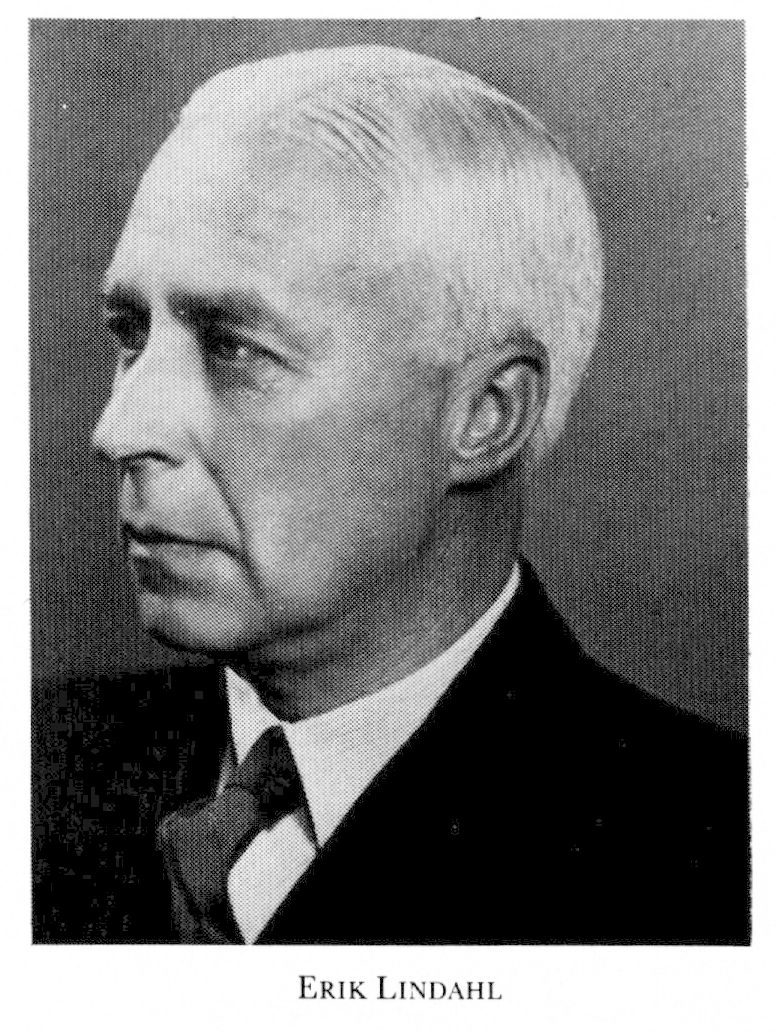 Lindahl, Erik Robert, f 21 nov 1891 i Sthlm, Ad Fredr, d 6 jan 1960 i Uppsala. Föräldrar: fängelsedir Carl Johannes L o Carolina Arfwedson. Studentex vid h latinlärov på Norrmalm i Sthlm 13 maj 10, inskr vid LU 10 sept 10, FK26okt 12,JK27maj 14, JL 10 dec 19, disp 13 dec 19, doc i finansvetenskap 8 jan 20, JD 31 maj 20, allt vid LU, doc i nationalekonomi o finansrätt vid UU 1 okt 24, ledde seminarieövn:ar i nationalekonomi vid StH läsåren 25—26 o 26—27, ledare för univ:stu-diecirklar i samma ämne i Sthlm 25—31, i Gbg 33 — 34, lär i nationalekonomi vid Inst för socialpolitisk o kommunal utbildn o forskn i Sthlm 26—28, tf prof i nationalekonomi med statistik vid handelshögsk i Gbg 11 okt 31—31 maj 32, prof i samma ämne där 20 juni (stadf 14 juli) 32, prof i nationalekonomi o finansrätt vid LU 30 dec 38, prof i samma ämne vid UU 23 jan 42-30 juni 58. - Sakk inom 1928 års bolagsskatteberedn jan 30— dec 31, vid utredn ang skattetrycket i Sverige o utlandet juli 35 —maj 36, led av en sub-komm för ekon o finansiell statistik vid Nationernas förb 36—39, av komm ang riksstatens uppställn mars—dec 36, ensam utredare ang skattepolitiska beredskapsåtgärder juni 39— okt 43, järnvägsstyr:s expert för utlåtande över 1938 års järnvägstaxekomm jan—sept 41, led av 1941 års komm ang värdestegringsskatt mars 41—aug 42, av socialut-bikhv.komm juni 42—mars 46, av komm ang levnadskostnadsindex sept 42—febr 43, sakk åt 1942 års jordbrukskomm okt 42—jan 44, valutasakk vid utredn ang ekon efterkrigs-problem maj —nov 43, led av 1944 års allm skattekomm maj 44—febr 49, sakk åt komissionen för ekon efterkrigsplanering nov 44— dec 45, led av Statens samhällsvetensk forskn:råd 47—50, av 1948 års järnvägstaxekomm jan 48—dec 56, av en av FN till Chile utsänd ekon expertkomm 49— 50, av järnvägsrådet från 50, överrevisor vid järnvägsstyr från 51, led av komm ang reglering av riksbankens sedelutgivningsrätt på längre sikt nov 51—nov 55, av 1953 års trafikutredn från juni 53, ordf i International Economic Association 56, i Nationalekon fören från 57. - LHVL 40, LVA 43, VA:s Arnbergska pris 43, LVS 50.