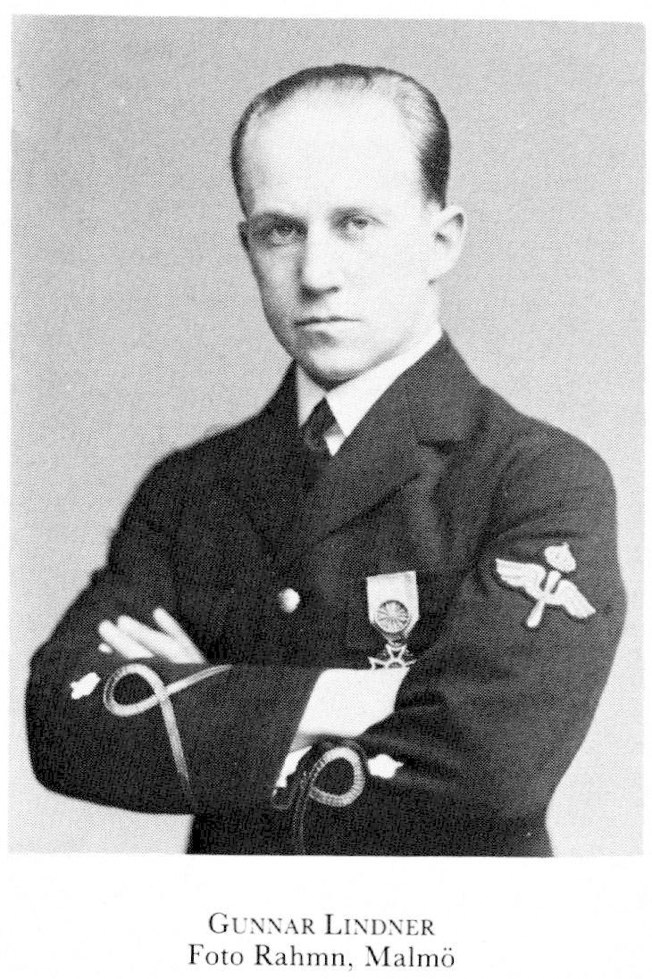 Lindner, Karl Gunnar, f 30 april 1901 i Kristiania, Paulus, d 27 aug 1943 på Nordsjön (enl db för Bromma, Sthlm). Föräldrar: pianofabrikanten Nils Olson L o Maria Nilsson. Studentex i Sthlm 20, erhöll flygcertifikat 21 juni 22, fast anställn vid arméns flygkompani 22, furir där 23 — 24, ingenjörsex vid Tekn skolan i Sthlm 24, tog trafikflygarcertifi-kat 25, anställd vid ab Aerotransport (ABA) 25 — 26, vid ab Flygindustri i Limhamn, Malm, 25 — 29, fänrik i flygvapnets (FV) reserv 1 juli 28, trafikflygare vid ABA (chefspilot) 29, underlöjtn i FV:s reserv 17 okt 30, löjtn där 5 maj 33, flygkapten vid ABA 38, kapten i FV:s reserv 8 sept 39.