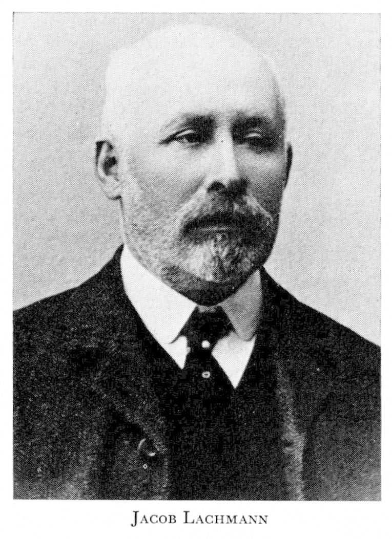 1 Lachmann, Jacob Leopold, f 10 juni 1844 i Odense, Danmark, d 25 juni 1909 i Snårestad, Malm. Föräldrar: grosshandl Julius L o Gille Meyer. Grosshandl o delägare i firma Breidrene Lachmann, Khvn, grundare av Ystads sockerraffinaderi, Brödrene Lachmann, 81, deläg o disp där 81—97, stadsfullm i Ystad 87—98, sv medborgare 27 sept 89, grundare av Köpinge sockerbruk (Köpingebro), St Köpinge, Malm, 93, deläg o VD i ab Ystads sockerfabrik i Köpinge, Ystad, 93—97, deläg, VD o disp i ab Ystads sockerraffinaderi 97—02, huvuddeläg i Trelleborg—Rydsgårds jernvägs ab, Malmö, 97, grundare av Skifarps sockerbruk, Malm, 01, grundare av Sukker ab Betlehem med sockerfabrik i S:t Croix, danska Västindien, 03.