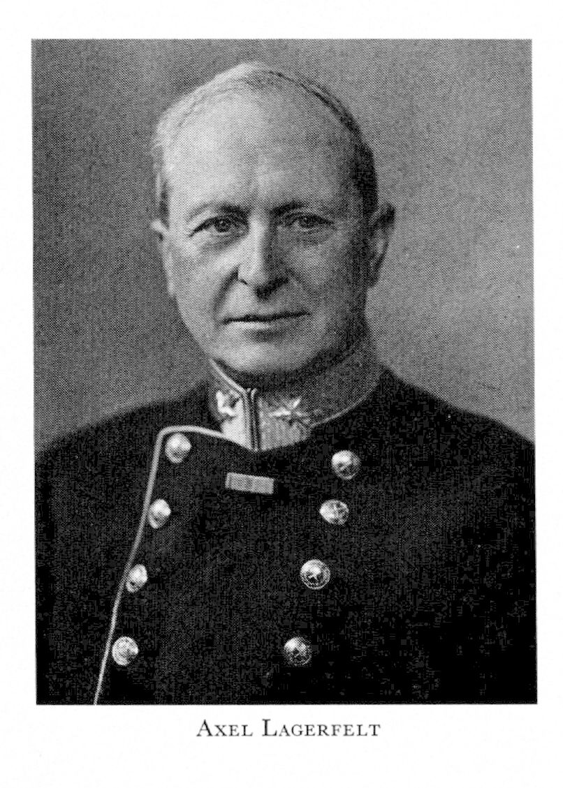 2 Lagerfelt, Gustaf Axel Emanuel, f 25 aug 1877 på Lagerlunda, Kärna, Ög, d 11 mars 1958 i Linköping. Föräldrar: kabinettskammarherren frih Gustaf Axel Fredrik L o Hedvig Elisabet Maria Ulrika Lovén. Volontär vid 1. Svea art:reg 15 juni 94, mogenhetsex vid h elementarlärov i Linköping 11 juni 95, off:ex 29 nov 97, underlöjtn i nämnda reg 10 dec 97, avslutade artilleri- o ingenjörhögskolans allm artillerikurs 16 maj 00 o högre artillerikursen 15 maj 02, repetitör där 1 sept 02—31 maj 04, löjtn 16 febr 03, artilleristabsofficer 2 juni 06—31 mars 09, lärare i artilleri vid nämnda skola 1 sept 09—31 aug 15, kapten 11 aug 11, uppdrag att utarbeta lärobok i artilleri för nämnda skola 12 dec 12—23 dec 16, överadjutant o major vid generalstaben 18 jan 18, stabschef vid VI. arméfördelningen jan 18—mars 21, major vid Norrlands art:reg 10 dec 20, vid Positionsart :reg 30 juli 21, chef för nämnda skola 16 sept 22—30, överstelöjtn i armén 16 nov 23, överste i armén 1 nov 26, överstelöjtn i Positionsart:reg 28 jan 27, i Smålands arméart:reg 1 jan 28, överste o chef för Bodens art:reg o artilleribefälh i Bodens fästning 30 maj 30, kommendant i Bodens fästning 7 juni 35 (tf 29 aug 33), generalmajor i armén 1 juli 36, avsked ur aktiv tjänst 30 sept 37 o ur generalitetets reserv 31 dec 47. — LKrVA 22.