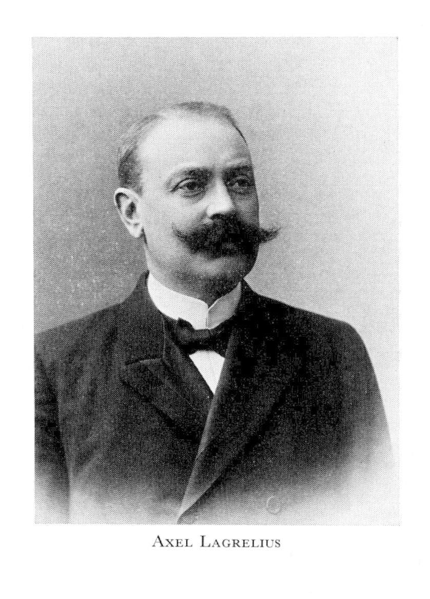 Lagrelius, Axel, f 16 juli 1863 i Karlanda, Värml, d 9 nov 1944 i Sthlm, Engelbr. Föräldrar: handl Anders Elof L o Laura Augusta Biesèrt. Elev vid h a l i Falun 76—80, vid tekn elementarskolan i Norrköping 80—83, anställd vid Generalstabens litogr anstalt 83, förest för dess kemigrafiska avd 88, e elev vid KTH 20 sept 88—90, tf förest för Generalstabens litogr anstalt 94—98, chef där 98—33, VD för A Börtzells tryckeri ab 98—33, VD för bokhandelsab Minerva 98, hovintendent 07, ordf i styr för Sveriges litogr tryckeriägares fören (förb från 16) 08—33, ordf i styr för Sveriges litogr tryckerier från 13, skattmästare i Sv sällsk för antropologi o geografi 14—32 (HedL 30), skattmästare i Sällskapet Idun 15, ordf i Sv teknologfören:s fastighets ab 16, led o skattmästare i Kinakomm 19, VD för Jacob Bagges sedeltryckeri 19—33, för Cederqvists grafiska ab 20—33, tf föreståndare för Riksbankens sedeltryckeri 20—24, överintendent 20, finsk generalkonsul i Sthlm 24—36, led av styr för Försäkr:ab Heimdall 25, led av o skattmästare i NM:s vänner 27, led av Egyptenkomm 28, v ordf i styr för Försäkr:ab Fenix 32, ordf i styr för Anna Sandströms skola 33, i fören Armémusei vänner 34, i styr för A V Carlssons bokförlag ab 34. — LKrVA 01, fil hedersdr vid UU 16 sept 27.