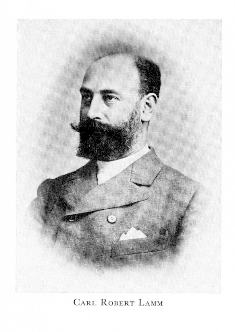 3 Lamm, Carl Robert, kusin till L 1 o L 2, f 4 aug 1856 i Sthlm, Mosaiska, d 12 aug 1938 på Näsby, Täby, Sth. Föräldrar: direktören Jacques L o Galathea Jacobsson. Praktiserade vid Motala mek verkstad 71—72, elev vid Teknologiska inst 13 sept 73, utex 9 juni 76, ritare vid Ludvigsbergs verkstads ab 76, verkmästare 1 april 79, VD o led av styr 81—04 (ordf från 87), led av styr för Sv slöjdfören från 93, led av styr för Fören för sv hemslöjd från 99, av komm för sv deltagande i 1900 års världsutställn i Paris, av styr för Luth & Roséns elektriska ab 04—22, VD i Näsby fastighetsab 07, led av Sthlms skiljenämnd för handel, industri o sjöfart 07—18, av komm för Sv slöjdfören:s konst-slöjdutställn i Sthlm 09, ordf i kommunalstämman för Täby 14—18, led av kommunalfullm där 19—34, av styr för Bukowskis konsthandel 21—26, andre vice ordf i Statens hemslöjdsråd 36.