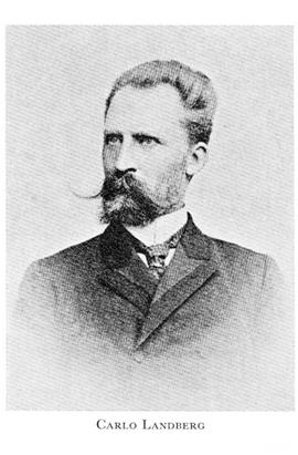 Landberg, Carl (Carlo), f 24 mars 1848 i Gbg, Kristine, d 20 juli 1924 i Bern. Föräldrar: grosshandl Carl Theodor L o Catarina Laurentia (Laura) Medin. Mogenhetsex vid Sthlms gymn 14 maj 69, inskr vid UU 28 sept 70, studier vid univ i Paris 71—72, studier o forskningar i Orienten o Europa från 72, bitr sekr vid arkeologkongressen i Sthlm 74, ciceron i Orienten åt V v Heidenstam 77—78, åt prinsarna Carl o Eugen 84— 85, studier vid univ i Leipzig 82—83 o Dr phil 30 jan 83, italiensk greve 24 aug 84, Sveriges o Norges delegat vid orientalistkongressen i Wien 86, sv-norsk generalkonsul o diplomatisk agent i Alexandria 14 dec 88—93, generalsekr vid orientalistkongressen i Sthlm o Kristiania 89, kammarherres titel 93.