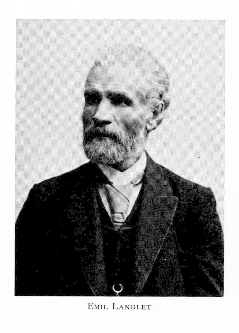 1 Langlet, Emil Viktor, f 26 febr 1824 i Borås, d 10 mars 1898 på Spetebyhall, Lerbo, Söd. Föräldrar: järnhandl Johan Philip L o Anna Elisabeth Broquist. Elev vid Chalmerska slöjdskolan, Gbg, 38—41, elev vid FrKA 46—aug 51, verkmästare o konduktör för den nya cellfängelsebyggn 46—51, konduktör vid Sthlms stads byggn:kontor 48, eo arkitekt i överintendentsämb 27 mars 49 —50, studier i Frankrike o Italien 51—56, k arkitekt 58, arkitekt o ledare för stortingsbyggnaden, Kristiania, 60—66, arkitekt i överintendentsämb 16 okt 66, e lär vid FrKA 76. — Agré 56, LFrKA 58, KorrespLVHAA 85.