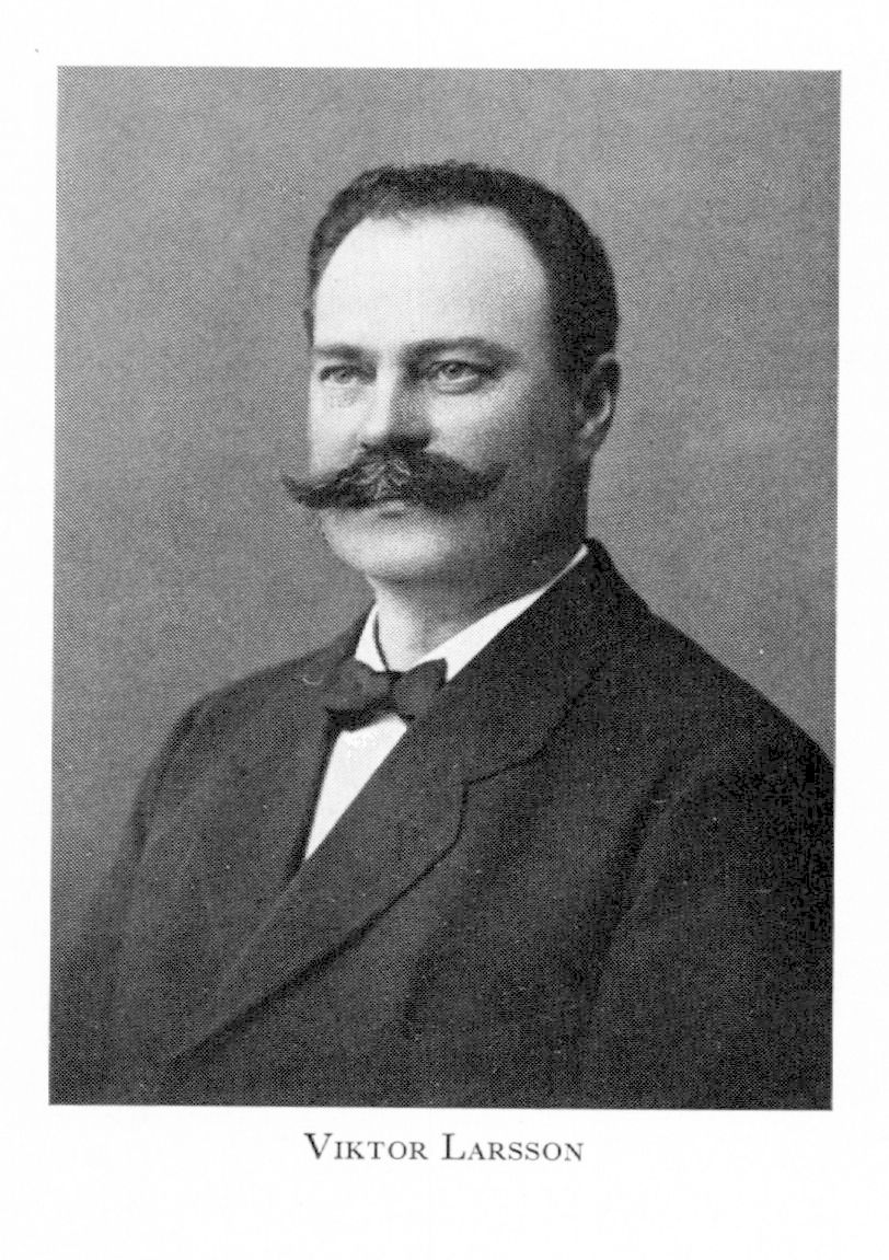 Larsson, Viktor, f 18 juni 1869 i Kolbäck, Vm, f 27 sept 1950 i Sthlm, Gust Vasa. Föräldrar: linjeförmannen Johannes L o Johanna Persdtr. Verkstadsarbetare vid Asea i Västerås 94, ordf i metallindustriarbetareförb:s avd där 95—02, led av stadsfullm där 99—06 o 11—24, v ordf 16—24, led AK 03—32 o FK 33—41 (led av särsk utsk 06, av KU 09, 12—14A, 15—21 o 24, v ordf i KU 18, ordf där 19—21 o 24, led av särsk utsk nr 1 14B, 20, 27 o 40—41, statsrevisor 15—18, led av särsk utsk nr 3 18—19, av utrikesnämnden 21, 24, 27—36, AK:s talman 22—23 o 27, led av bevilln:utsk 37—40), led av soc:demokratiska partistyr 05—32, led av Västmanlands läns landsting 10—28, av komm ang lärlingsväsendets utsträckn till industrin maj 10—juli 13, ordf i Västmanlands soc: demokratiska partidistr 15—30, led av komm ang revision av fattigvårds- o utskyldsstrecken nov 17—nov 18, ang be-gränsn av de militära utgifterna m m dec 18—nov 19, ang församlingsrätten aug—okt 19, av försvarsrevisionen nov 19—mars 23, fullm i riksgäldskontoret maj 20—okt 24, led av folkomröstn:komm juni 20—febr 23, statsråd o chef för kommunikationsdep 18 okt 24—7 juni 26, led av komm ang statstjänstemännens bisysslor dec 26—juni 28, fullm o andre deputerad i riksbanken 27— 36.