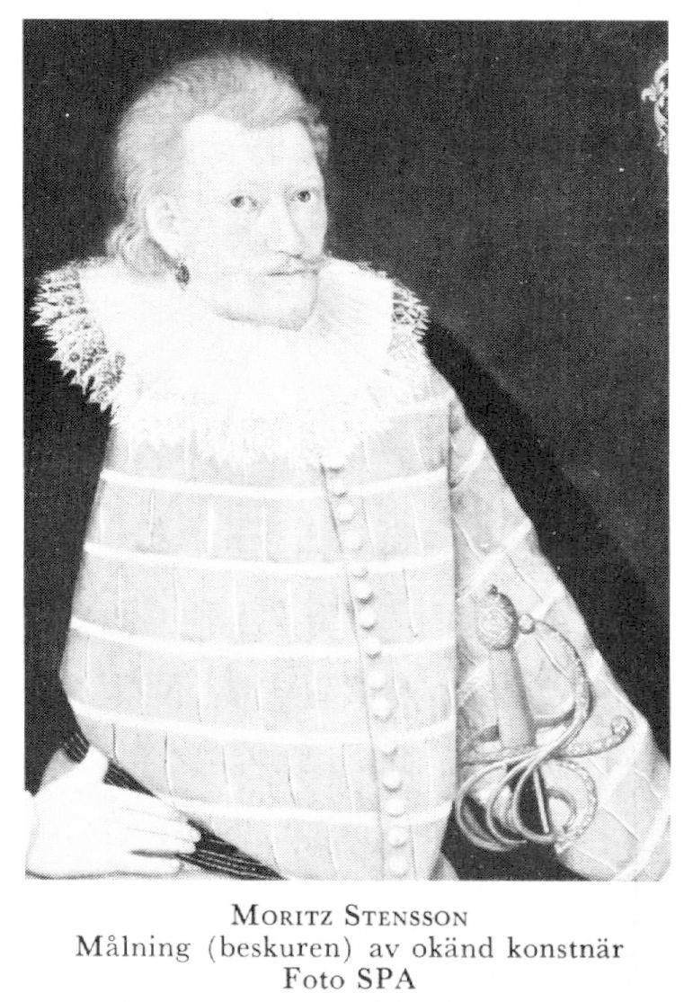 6 Moritz Stensson, bror till L 5, f 10 sept 1559 på Kärra (HH 20, s 162) i Örgryte (PHT 1970, s 161), d 23 nov 1607 på Kägleholm, Ödeby, Ör (begr 17 febr 08 i eget gravkor i Örebro). Hertig Karls råd 84, häradshövd i Oppunda härad 26 juli 84— 96, lagman i Närke från 14 aug 95, ståth över Västmanland o Dalarna okt 98, ståth på Reval o över Estland sept 00—okt 02, erhöll Raseborgs grevskap i donation 10 dec 00, riksråd o drots 17 juni 02.