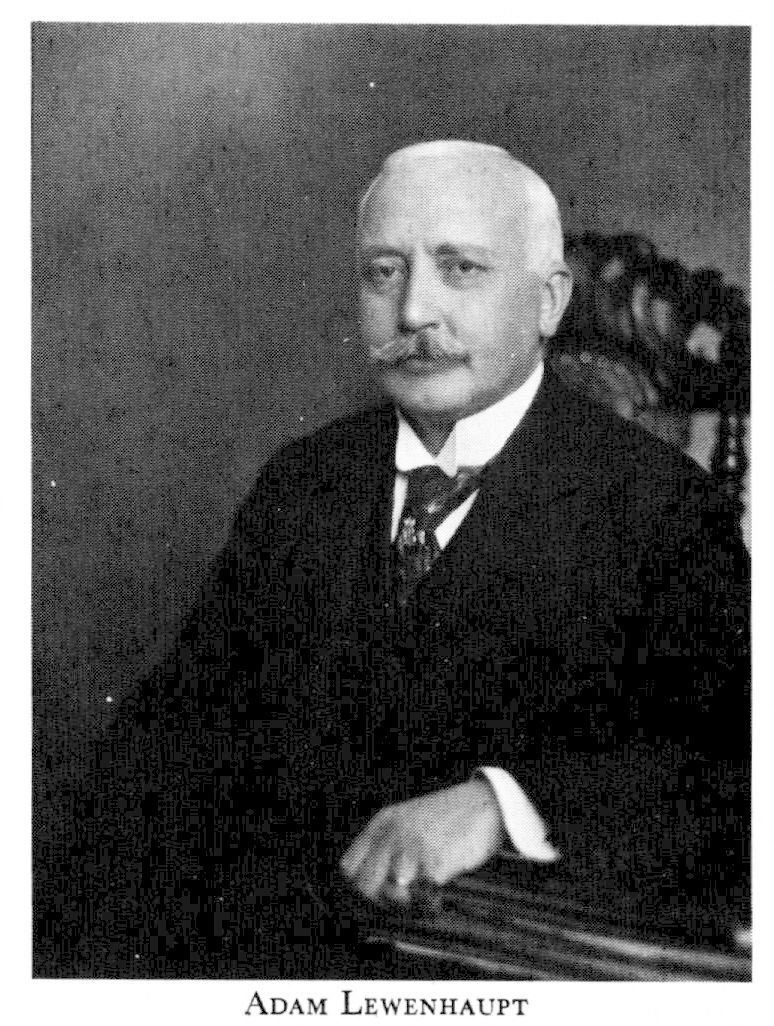 13 Lewenhaupt, Adam Ludvig Carl, son till L 10, f 5 dec 1861 i Sthlm, Klara, d 26 dec 1944 där, Hovf. Mogenhetsex vid Sthlms ateneum 16 maj 81, inskr vid UU 17 sept 81, jur preliminärex 31 jan 85, inskr vid LU 9 okt 85, kansliex där 30 jan 88, amanuens i lantförsvarsdep o finansdep 16 febr 88, eo amanuens i riddarhusets kansli 25 maj 88, i RA 29 maj 88, dessutom amanuens vid SkS 26 febr 89—96, härold vid KMO 28 nov 92, kammarherre hos änkehertiginnan av Dalarna 9 jan 95—14, registrator vid KMO 15 maj 99 (tf 23 nov 96)—22 nov 08, riksheraldiker 18 sept 03—2 okt 31, amanuens i RA 16 sept 04, riddarhusgenealog 30 sept 05— 08, introduktör för främmande sändebud 17 nov 05—9 nov 28, kommitterad ang förslag till riksvapen dec 05—jan 08, medl av beskickn till Dresden, Konstantinopel o Bukarest jan—febr 08, andre arkivarie i RA 1 jan 10—17, förste arkivarie över stat 16 febr 17—31 dec 28, hovmarskalk 31 dec 15, generalstormästare i Stora Amaranterorden från 16, underkansler i survivans vid KMO 27 april 18, underkansler där från 8 dec 23, led av 1927 års fanutredn:komm sept—dec 27, generalguvernör o stormästare i Timmermansorden från 28, överstekammarjunkare 16 juni 28, överstekammarherre 31 dec 40, kommendator för Johanniterorden i Sverige från 41. — LSkS 96, Litt et art 21, fil hedersdr vid StH 29 maj 36, RCXIII:s O 42.