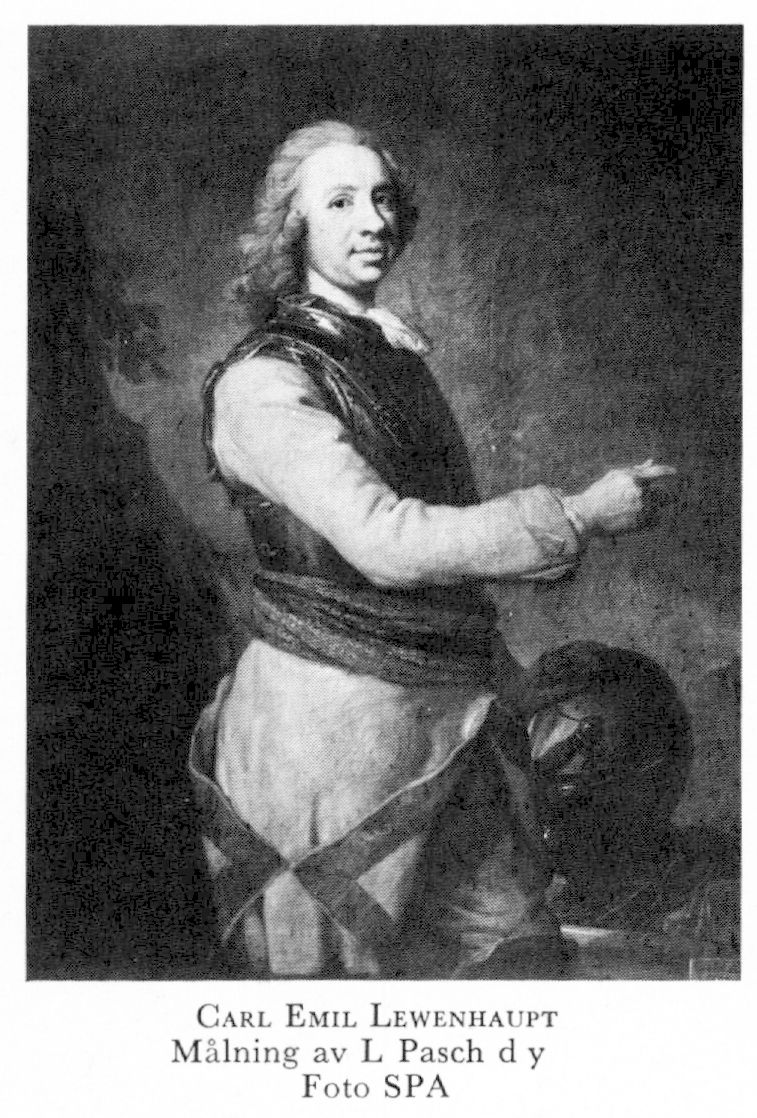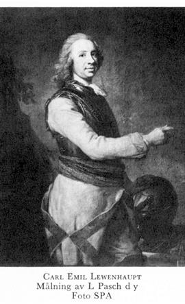 7 Lewenhaupt, Carl (Charles) Emil, son till L 6, f 28 mars 1691 i Sthlm, d 4 aug 1743 där. Volontär vid generallöjtn frih Sparres reg i Brabant 08, kapten vid greve v Dernaths reg i holsteinsk tjänst 09, överadjutant hos frih Sparre 09, överstelöjtn vid v Schwerins bremiska dragonreg 20 dec 10 (fullm 12 aug 11), vid Marschalks verdiska dragonreg 28 aug 11 (fullm 7 mars 12), överste för rügenska infanterireg 9 nov 15, löjtn vid livdrabanterna 3 nov 16, deltog i riksdagarna 19-41 (SU 19, 20, 26, 31, 34, 38 o 40, mindre sekreta deputationen 20, 38, justitie- o krigsdeputationen 23, defensionsdeputationen 26 o 31, priskommissionen 23), envoyé en mission spéciale till Wien 24 mars 20, generalmajor av kavalleriet 28 maj 22, expektansöverste vid Södra skånska kavallerireg 16 okt 23, överstelöjtn vid reg 14 jan 25, överste o chef där 27 febr 29, vald till lantmarskalk 17 maj 34 o 8 dec 40, generallöjtn av kavalleriet 30 juni 40, general av kavalleriet 5 aug 40, befälh över sv armén i Finland 21 aug 41, dömd av en riksens ständers kommission från liv, ära o gods 20 juni 43.