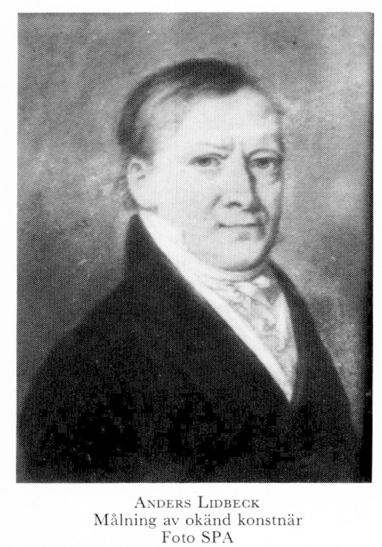 2 Lidbeck, Anders, son till L 1, f 26 juli 1772 i Lund, d H maj 1829 i Sthlm (begr i Jak). Inskr vid LU 26 juli 73, mag där 23 juni 90, doc där i naturalhist 6 dec 90, botanisk demonstrator 30 april 91, v bibliotekarie 28 febr 98, bibliotekarie 17 dec 99, prof i estetik från 11 maj 01, deltog i riksdagen 28/30. — LFS 94.