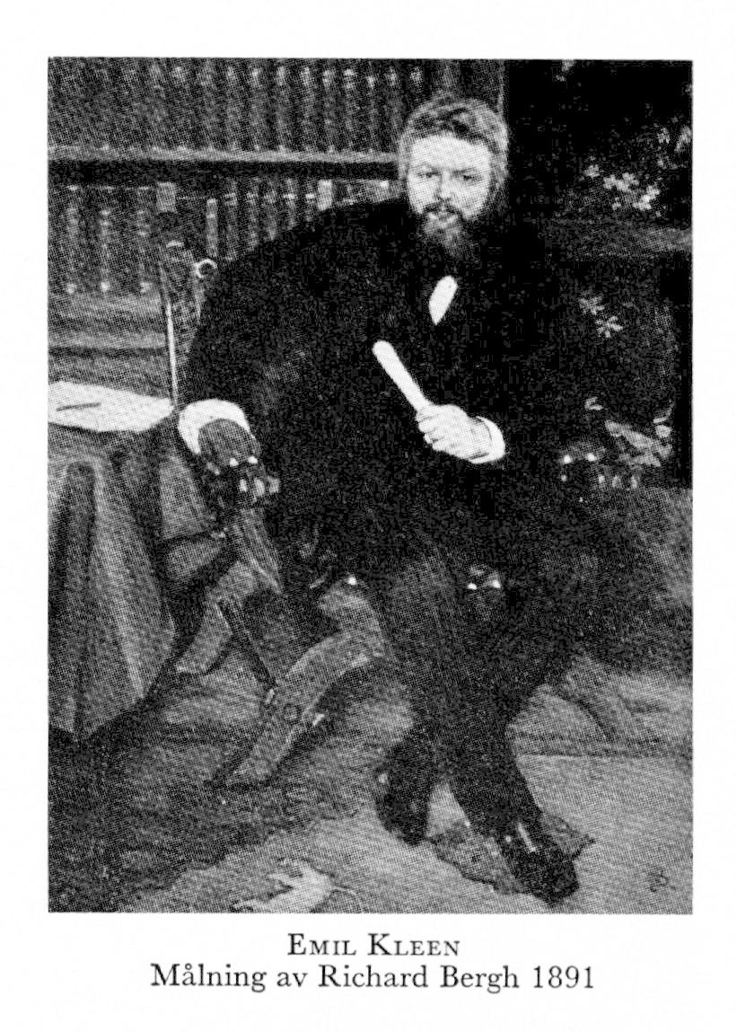 3 Kleen, Emil Andreas Gabriel, bror till K 2, f 21 nov 1847 i Karlsborg, Skar, d 8 dec 1923 i Sthlm, Engelbr. Mogenhetsex vid Nya elementarskolan i Sthlm 19 maj 68, inskr vid UU 28 maj 68, FK 27 maj 72, disp 12 dec 74, FD 31 maj 75, MK vid Kl 13 mars 78, ML där o leg läk 18 maj 81, MD i Wien 28 febr 83, prakt läk under vintrarna i Sthlm, under somrarna i Karlsbad i Böhmen 84—14, drev inst för mekanoterapi 00—14. Med hedersdr vid UU 24 maj 07. Skriftställare.