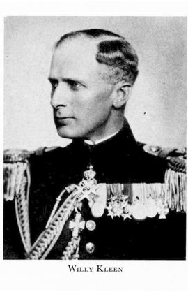 6 Kleen, Carl William (Willy), bror till K 5, f 31 aug 1884 i Norderhov, Ringerike, Norge, d 7 jan 1966 i Rom (enl db för Danderyd, Sth). Mogenhetsex vid Beskowska skolan i Sthlm vt 03, volontär vid Svea art:reg 2 juni 03, officersex 29 nov 05, underlöjtn i reg 15 dec 05, vid reg 15 aug 06, genomgick art- o ing:högsk 1 okt 07—31 juli 08, löjtn 28 aug 08, genomgick Krigshögsk okt 15—juli 17, kapten 1 dec 17, lär vid Krigshögsk i krigshist, militärgeogr o strategi 1 okt 18—30 sept 22 o 1 okt 25—30 sept 28, sekr hos sakk för utredn o avgivande av förslag till arméns o marinens flygvapen m m 1 jan 19—14 sept 21, kapten vid Generalstaben 13 maj 22, sakk inom försvarsdep o i riksdagsutsk vid utarb av ny härordn okt 23—febr 24 o dec 24—mars 25, major i Generalstaben 1 nov 26, avd:chef vid kommunikationsavd där 25 okt 26—11 nov 32, överstelöjtn i armén 1 juli 30, i Generalstaben 2 okt 31, vid Generalstaben 16 juni 32, vid Svea art:reg 20 jan 33 (förordn 11 nov 32), överste på reservstat vid Östra arméfördeln 17 okt 36, medarb i NDA 36—38, anställd vid Åhlén & Åkerlunds förlags ab 38, försvarsområdesbefälhavare i Norrtälje 39—42, led av styr för Åhlén & Åkerlunds förlags ab från 42, inskr vid UU 11 sept 42, avsked ur armén 1 okt 44, FK vid UU 28 maj 46, FL 29 okt 48. — LKrVA 25.