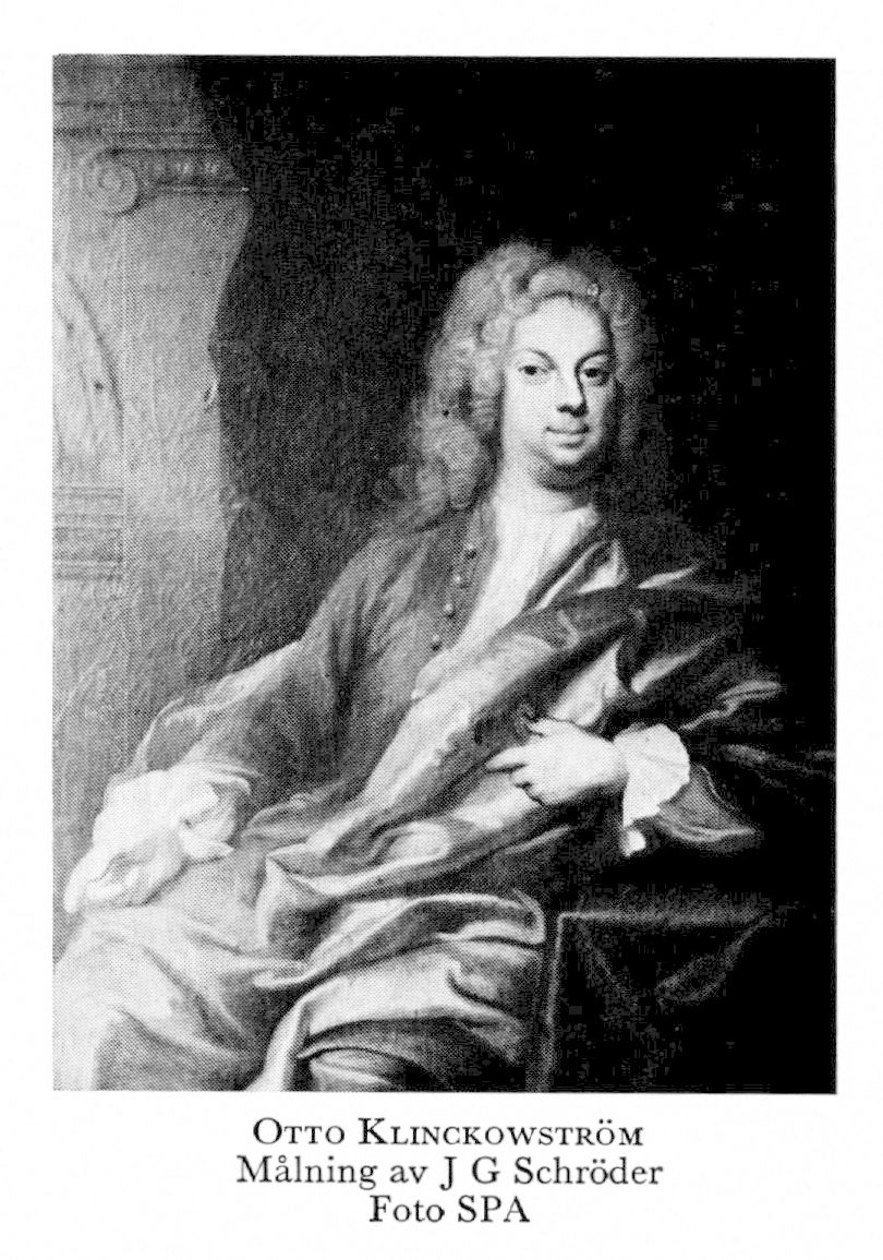 1 Klinckowström, Otto Wilhelm, f 27 nov 1683 i Wismar, d 16 juni 1731 vid Pyritz hälsobrunn, Pommern. Föräldrar: generalkrigskommissarien regeringsrådet Martin K o frih Anna Elisabet Vorberger. Auskultant vid Wismarska tribunalet, kanslist i livländska kontoret av k kansliet febr 05, kommissionssekr vid polska hovet 31 maj 08, sekr vid tyska exp av k kansliet 23 maj 15, kansliråds titel 19 aug 20, eo envoyé till preussiska hovet 8 aug 26.