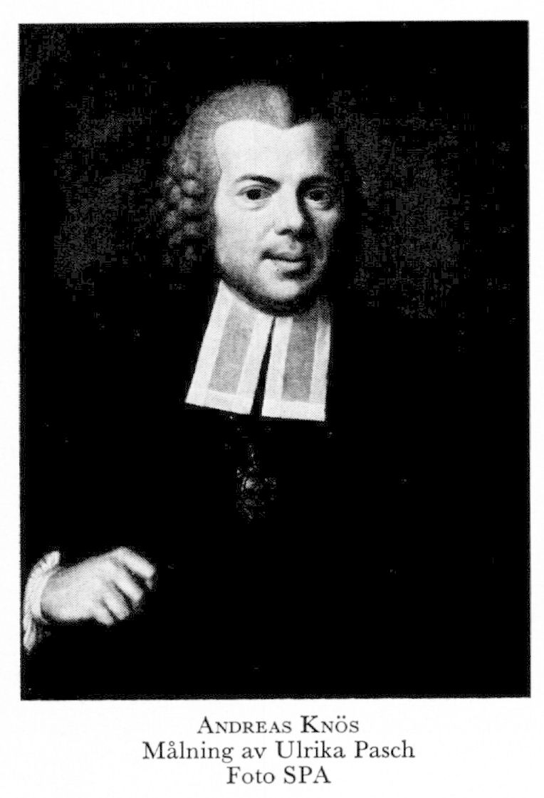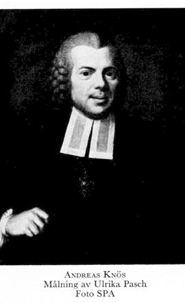 1 Knös, Andreas (Anders) Olofsson, dp 3 febr 1721 i Mariestad, d 29 maj 1799 i Skara. Föräldrar: kontraktsprosten Olof K o Eva Bellander. Elev vid Mariestads skola 30 april 29, vid Skara trivialskola 31, vid Skara gymnasium 34, inskr vid UU 1 aug 37, disp pro exercitio 15 mars 40, FK 4 dec 41, disp pro gradu 13 okt 42, mag 22 juni 43, allt vid UU, informator för Jacob Gabriel Gyllenborg, prästv i Skara till pastorsadjunkt i N Vånga, Skar, 27 mars 47, v pastor där 48, domkyrkoadjunkt i Skara 26 april 49, v gymnasieadjunkt där 50, ord 51 (legitimerade sig till adjunkturen 8 dec 50), kh i Leksbergs pastorat 14 dec 51, rector scholæ i Mariestad 52, TL vid UU 19 nov 54, lektor i logik o fysik i Skara 56, andre teol lektor där o kh i Vinköls prebendepastorat, Skar, 27 febr 56 (tilltr 57), kontraktsprost där maj 58, förste teol lektor i Skara, kh i Götene, Skar, o prost över Kinna kontrakt okt 67, TD vid LU 25 juni 68, riksdagsman 69—70 o 78, domprost i Skara från 21 aug 71, led av ecklesiastikomm 93.