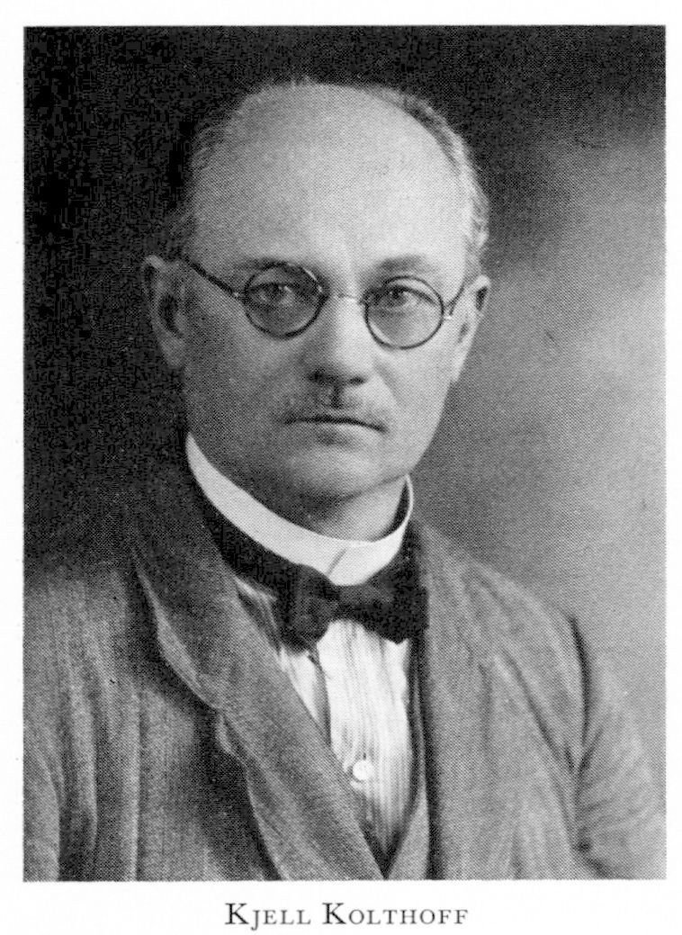 2 Kolthoff, Kjell Gustaf Adolf Henrik, son till K 1, f 29 aug 1871 i Uddevalla, d 28 febr 1947 i Rasbo, Upps. Läroverksstudier i Uppsala, deltog i upprättandet av Biologiska mus, Sthlm, 93, chef för K:s naturaliemagasin, Uppsala (ab från 10) 05–32. — Skriftställare, landskapsmålare.
