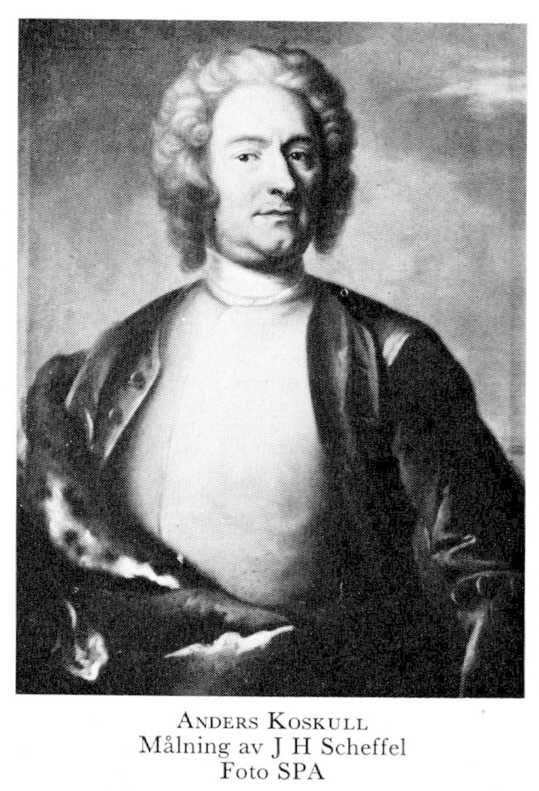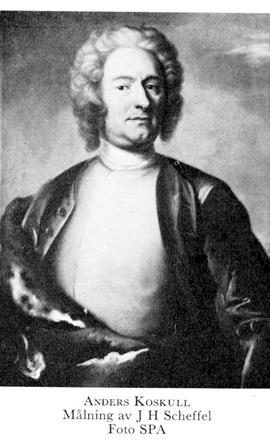 Koskull, Anders, f 25 juli 1677 på Bocksjöholm, Undenäs, Skar, d 20 dec 1746 på Kronoberg, Växjö. Föräldrar: kapten Erik K o Anna Maria Gyllensvärd. Volontär vid livg 92, furir vid Närke-Värmlands reg 17 maj 95, fänrik vid Västmanlands reg 27 febr 00, löjtn där 30 sept 00, kaptenlöjtn 31 jan 01, kapten 2 okt 01, ryttmästare vid Södra skånska kavallerireg 2 dec 04, major där 10 maj 08, överstelöjtn vid Norra skånska kavallerireg 31 jan 11, överste vid Stanislaus av Polen drabanter 7 mars 13, vid Benderska dragonerna 13 okt 13, vid Livreg till häst 4 april 17, generalmajor av kavalleriet 28 april 19, frih 2 maj 19, deltog i riksdagarna 19, 20, 23, 40—41 o 42-43 (SU), överste vid Södra skånska kavallerireg 21 maj 23, landsh i Kronobergs län 27 febr 29, generallöjtn:s titel 13 sept 43.