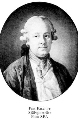 1 Krafft, Per, f 16 jan 1724 i Arboga, d 7 nov 1793 i Sthlm, Klara. Föräldrar: handlanden Erik K o Anna Greta Cupp. Inskr vid UU 5 mars 36, elev hos porträttmålaren J H Scheffel i Sthlm 40—43, hos C G Pilo i Khvn 49—55, studier i Paris 55—62, förste hovmålare hos markgreve Fredrik i Bayreuth 17 april 62, prof vid konstakad där 62—64, studieresa till Italien 64—65, åter i Bayreuth 67, hovmålare hos Stanislaus II Poniatowski i Warszawa 20 sept 67—68, verksam i Sthlm från nov 68, erhöll understöd av slottsbyggn: direktionen för arbeten vid Sthlms slott 14 nov 70, prof:s n h o v 25 nov 73. — LFrKA 73.