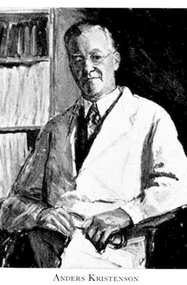 Kristenson, Anders Vilhelm, f 17 nov 1888 i Rönnäng, Göt, d 7 nov 1954 i Sthlm, Engelbr. Föräldrar: folkskollär Anders Johan K o Hilda Sabina (Beria) Lundgren. Mogenhetsex vid Gbgs h latinlärov vt 07, inskr vid UU 15 jan 09, MK där 12 sept 12, fältläkarstipendiat maj 14—nov 17, ML vid Kl 8 sept 17, underläk vid Örebro länslasaretts kir avd 1 nov 17—15 juni 19, bataljonsläk vid Upplands reg 16 maj 19—31 dec 27, bitr lärare i fysikalisk diagnostik i Uppsala 1 juli 20—30 juni 22, 1 sept 27—40 (37—40 tillika laborator), amanuens resp underläk vid med kliniken där 1 sept 22—31 aug 26, disp pro gradu vid UU 10 maj 24, MD 31 maj 24, docent i praktisk med vid UU 3 okt 24—30 april 37, bitr lär i med 1 juli 25—31 aug 27, överläk vid bröstkliniken 1 sept 27— 30 april 37, regementsläk vid Upplands reg 1 jan 28—30 april 37, överläk vid Akad sjukhusets centralsanatorium 1 maj 37 (tf juli 35), prof i med vid Kl o överläk vid Serafimerlasarettets med avd 2 från 1 nov 40, led av styr för Statens inst för folkhälsan 40, medl av med:styr:s vetensk råd från 45, läk vid Sthlms centraldispensär från 45, led av komm för Karol sjukhusets utbyggn från 47.
