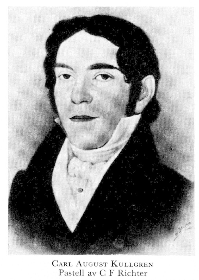 1 Kullgren, Carl August, f 19 jan 1793 i Uddevalla, d 25 sept 1851 i London. Föräldrar: handl Jonas K o Lovisa Johanna Spak. Elev vid Uddevalla lägre lärdomsskola, vid evangeliska brödraförsamlingens läroanstalt i Christiansfeldt, Danmark, grosshandl o redare under firma C A Kullgren, Uddevalla, från 09, burskap som handl där 5 maj 34, led av styr för Uddevalla sparbank från 36, led av drätselkommissionen 39, drev stenindustri på Malmön, Göt, från 42.