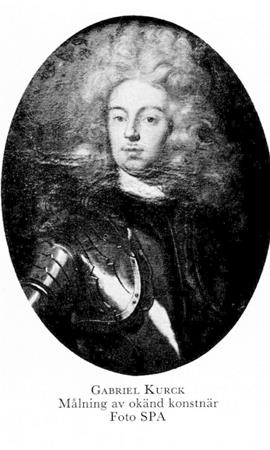 6 Kurck, Gabriel, bror till K 4 o K 5, f 14 nov 1630 på Viborgs slott, d 1712 trol på Laukko, Vesilax, Tavasteh, Finland. Inskr vid Åbo akad 41, vid UU 19 nov 44, studier där till 52, volontär i spanska armén okt 53, prom mag i Oxford våren 54, kammarherre hos drottning Kristina i Antwerpen hösten 54—febr 55, hos Karl X Gustav i Polen juni 56, ryttmästare vid arvprinsens livgarde till häst 26 sept 56, kapten vid livgardet hösten 56, major där 31 mars 57, deltog i riksdagarna 60—80, 86 och 89, överste för Viborgs infanterireg 24 aug 60, för Västmanlands reg 20 nov 60—68, landsh i Viborgs län mars 67 (tilltr ej), i Skaraborgs län 26 aug 68—30 juni 83.