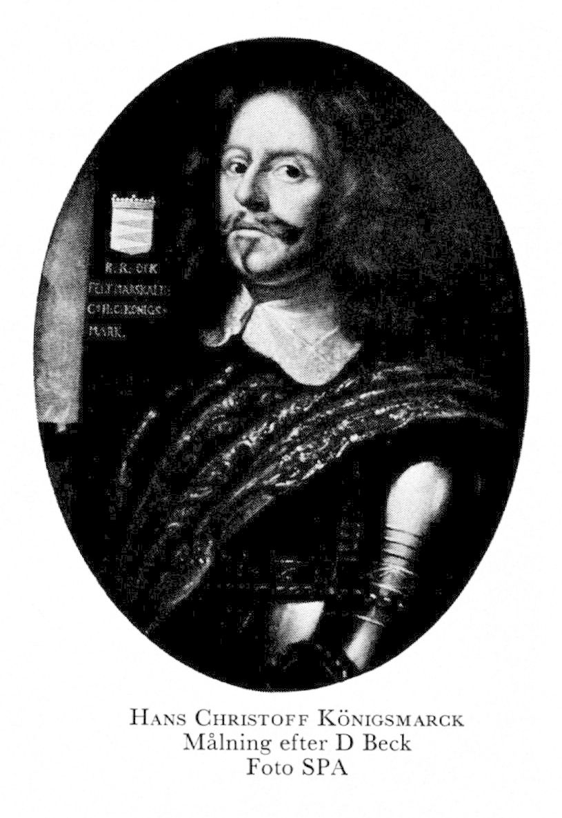 1 Königsmarck, Hans Christoff, f 12 dec 1605 (E 8098, RA) i Kötzlin, Brandenburg, d 20 febr 1663 i Sthlm, jordfäst 6 mars 63 i Ridd. Föräldrar: kejserlige ryttmästaren Conrad v K o Beata (Beatrix) v Blumenthal. I kejserlig krigstjänst 20—30, avsked som fänrik 30, kapten i sv tjänst 31, major 33, överstelöjtn 34, överste 36, generalmajor 25 mars 40, generallöjtn jan 45, guvernör över Bremen-Verden 18 juni 45, general 28 april 46, fältmarskalklöjtn 1 juni 48, greve 26 mars 51, riksråd 10 april 51, fältmarskalk 14 april 55.