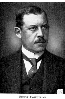 Ingeström, Bengt Gustaf Theodor, f 5 maj 1873 i Sthlm, Klara, d 28 nov 1953 där, Osc. Föräldrar: stärbhusnotarien Carl Viktor August I o Fanny Maria Laurén. Elev vid Nya elementarsk i Sthlm 82—88, ord elev vid KTH 15 sept 90, avgångsex från maskinbyggnad 10 juni 93, ing vid ab de Lavals ångturbin 94—97, grundare av firman Zander & Ingeström 1 febr 98, ensam innehavare av firman 01—14, VD i ab Zander & Ingeström 3 dec 14—40 (ordf i styr 14—53), ordf i styr för ab Bröderna Ameln 06—53, led av styr för Sv ackumulator ab Jungner 10—53 (ordf 48—53), led av Sveriges tekn-industriella skiljedomsinst 14—44 (v ordf från 37), grundare av ab Atmos 15, initiativtagare till o stiftare av ab Vapor-ackumulator, Sthlm, 16, av Maskin-a/s Zeta, Oslo, 16 (led av styr från 17) o Zeta oy, Hfors, VD för Bultfabriksab i Hallstahammar 18—27 (led av styr 12—48, ordf 39—48), initiativtagare till o stiftare av ab Arctic, Sthlm, 25, fullm i Sthlms handelskammare 26—42 (v ordf 39—42), led av styr för ab Separator 30—48 (ordf 37—48), stiftare av ab Imoindustri 31 o dess VD 31—43 (ordf i styr där 31—53), ordf i styr för ab Kanthal, Hallstahammar, 31—48, i styr för Eskilstuna fabriksab 33—48, led av styr för stiftelsen Tekn mus 33—48 (2:e v ordf 40, hed:led 48), ordf i styr för Ramnäs bruksab med Wirsbo o Ramnäs kraftab o Ferna bruksab 43—48, för Jönköpings mek werkstadsab från 50.— Iqml 53.