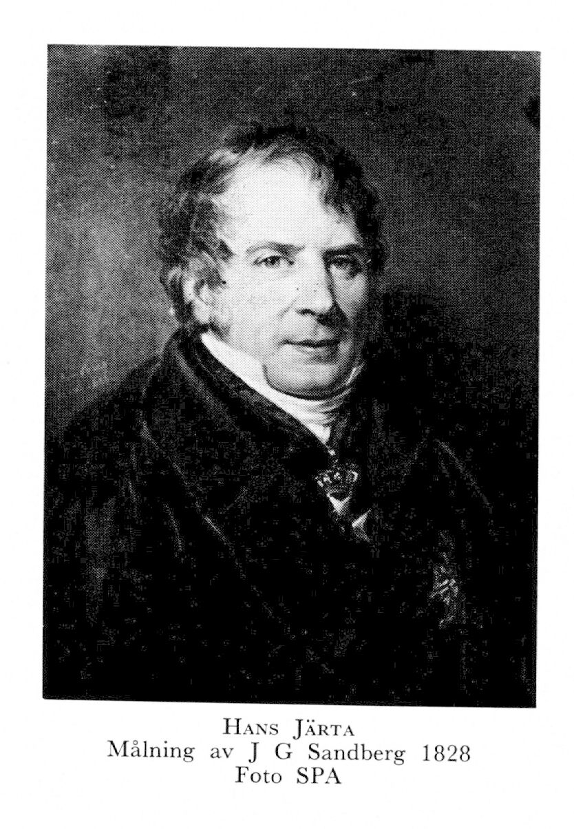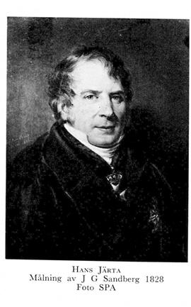 Järta, Hans, f 11 febr 1774 på Näs kungsgård, Husby, Kopp, d 6 april 1847 i Uppsala. Föräldrar: generallöjtn frih Carl Hierta o Maria Charlotta v Plomgren. Volontär vid Dalreg 77, sergeant där 22 dec 77, fänrik i reg 16 nov 79, vid reg 6 dec 87, inskr vid UU 12 okt 87, kansliex 14 juni 90, eo kanslist i k kansliet 8 febr 91, i RA 10 jan 92 o i utrikesexp 19 juni 92, andre sekr i kabinettet för utrikes brevväxlingen 8 sept 92, prot:sekr i justitierevisionsexp 7 mars 96—29 maj 00, adjung led av Svea hovrätt 96, avsade sig adelskapet vid riksdagen i Norrköping 29 maj 00, förklarades förlustig adligt stånd, namn o sköldemärke 14 aug 00, antog namnet J 23 sept 00, kommissionär för Kopparbergs bergslag 04, sekr i Sthlms stads brandförsäkringskontor 05—09, privatjurist i Sthlm 09, sekr i konstitutionsutsk vid riksdagen 09, statssekr för handels- o finans-exp 12 juni 09—18 mars 11, landsh i Kopparbergs län 19 nov 12—26 mars 22, tf statssekr i handels- o finansexp 3 okt 15—13 mars 16, led av komm till överseende av rikets allm undervisn:verk 28, tf chef för RA 14 juli 37—28 dec 44. Skriftställare. — LLA 12, LSA 19, LVA 28, HedLVS 28, HedLVHAA 32, LSkS 32.