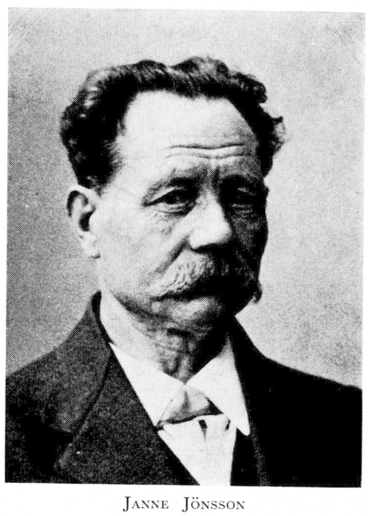 Jönsson, Janne, f 27 juni 1861 i Kallna, Krist, d 8 april 1941 i Sthlm, S:t Göran. Föräldrar: snickaren o lantbrukaren Jöns Peter J o Petronella Månsdtr. Arbetare i Bjuvs o Ljungsgårds kolgruvor (båda Malm) 80—89, fabriksarbetare vid Helsingborgs gummifabriks ab 92—96, ordf i arbetsmannafackfören där 92—95, kassör i Skånska grofarbetareförb juni 92, i Sverges grofar-betareförb (Sv grof- o fabriksarbetareförb från 01) febr 95, fungerande ordf där april 95, vald till ordf 97, förtroendeman där 97 —30, red för tidn Grofarbetaren 97—13, led av LO:s representantskap 99, en av grundarna av Skand ömsesidighetskomm 06, sekr där 28—30, led av LO:s landssekretariat 06 —31, av komm ang arbetsfredsfrågan dec 28—sept 29. G 5 nov 86 i Ausås, Krist, m Johanna Persdtr, f 18 juli 59 där, d 7 febr 48 i Sthlm, S:t Göran, dtr till skräddaren Per Larsson o Ulrika Orup.