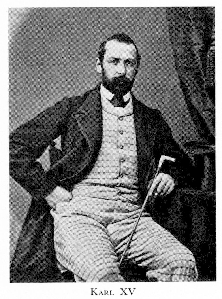 Karl XV (Carl Ludvig Eugène), f 3 maj 1826 på Sthlms slott, d 18 sept 1872 i Malmö. Föräldrar: konung Oscar I o Josefina av Leuchtenberg. Döptes 11 maj 26 o erhöll titeln hertig av Skåne, undergick på Sthlms slott prövning motsvarande studentex 19—20 dec 43, kansler för UU 15 april 44, för LU 2 maj 44, inskr vid UU okt 44, löjtn vid Svea livgarde o Svea artillerireg 12 aug 45, överste i nämnda reg:en o Kronprinsens husarreg 12 juni 46, generalmajor o chef för Livgardesbrigaden 21 april 47, generalfälttygmästare 49, generallöjtn 19 april 53, vicekonung i Norge 7 febr 56, mottog riksstyr 25 sept 57, Sveriges o Norges konung 8 juli 59, krönt i Sthlms storkyrka 3 maj 60, i Trondheims domkyrka 5 aug 60.