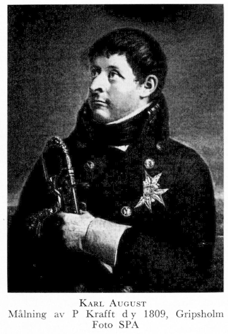 J Aall, Erindringer som bidr til Norges historie fra 1800 til 1815, 2 (1844); H A Barton, The Swedish succession crises of 1809 and 1810 and the question of Scandinavian union (Scandinavian studies, vol 42, 1970, s 309—333); Handl:ar till kronprins K:s hist, ed S Clason (HH 27: 2, 1925); J Forchhammer, Christian August, prinds af Augusten-borg (Dansk Maanedsskr, 1—2, 1868, s 1— 51, 241—357, 387—443); E Forssberg, K, gustavianerna o 1809 års män (1942); O A Johnsen, Christian August (Norsk biogr lexikon, 2, 1925, s 584—595); H Jørgensen, Christian August (DBL, 5, 1934, s 179— 182); Meddelelser fra krigsarkiverne, 1—4 (1883—90); Y Nielsen, Lensgreve Johan Caspar Herman Wedel Jarlsberg . . ., 1 (1901); Norske samlinger, 1—2 (1849—60); B Sjövall, Georg Adlersparre o tronfrågan 1809 (1917); J S Worm-Müller, Norge gjennem nödsaarene. Den norske regjeringskommission 1807—1810 (1917—19). — P Samzelius, Några ord om kronprins K:s giftermålsfråga (Karl Johans förb:s handl:ar 1919—22, 1922).