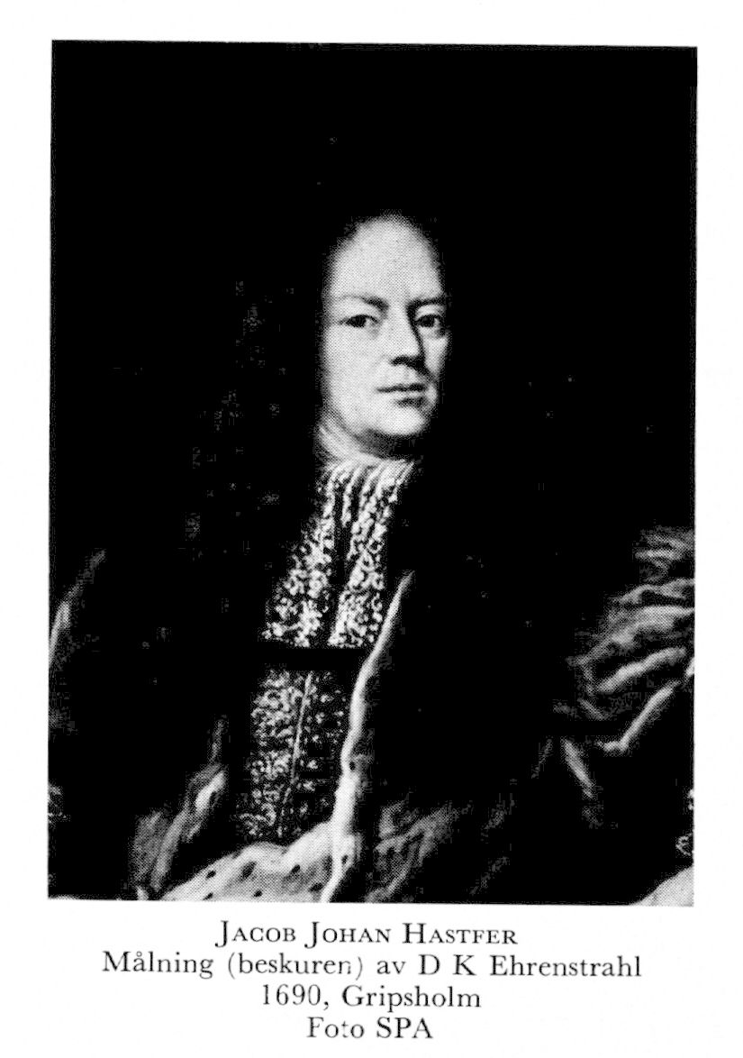 1 Hastfer, Jacob Johan, f 11 dec 1647 i Reval, d 24 dec 1695 i Riga. Föräldrar: mannrichter Ewold H o Emerentia Veronika v Mengden. Löjtn vid amiralitetet o kommenderad på ett örlogsskepp till Portugal 69, fänrik vid livgardet 6 nov 71, löjtn där 15 juli 72, kapten 13 maj 73, major vid skeppsflottan 11 sept 75, major vid livgardet 3 febr 76, överstelöjtn där 16 dec 76, överste 20 juli 77, frih 3 mars 78, general-löjtn av infanteriet 9 febr 86, guvernör över Livland o Riga 10 febr 86, k råd o generalguvernör i Livland 20 jan 87, greve 10 dec 87 (introd 89), fältmarskalk 1 juni 90, kansler vid Dorpats akad 90.