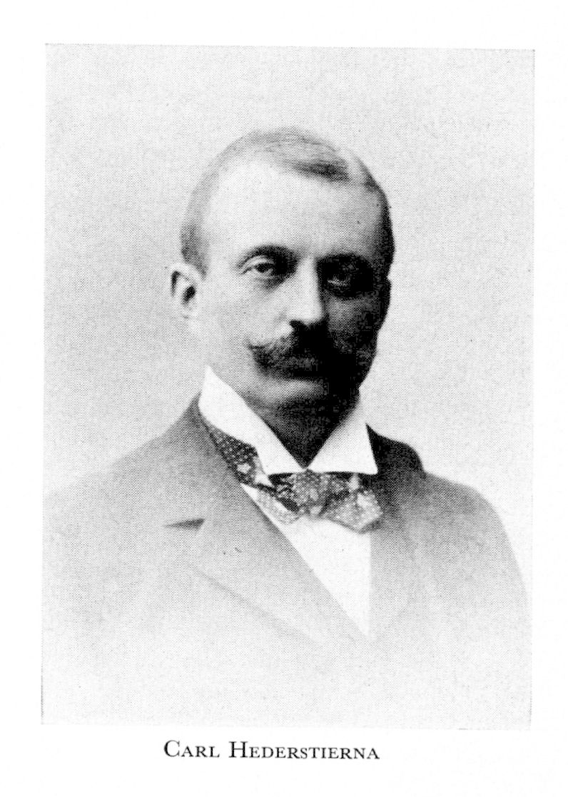 3 Hederstierna, Carl Fredrik Wilhelm, son till H 2, f 1 dec 1861 i Höreda (Jönk), d 17 nov 1928 i Sthlm (Nik). Mogenhetsex i Sthlm 80, inskr vid UU 21 sept 80, jur fil ex 13 sept 82, JK 15 dec 86, eo notarie vid Svea hovr 20 dec 86, v häradsh 20 dec 88, tf fiskal i Svea hovr 11 jan 92, fiskal 29 nov 95, assessor 25 nov 98, tf revisionssekr 7 dec 00, konstit revisionssekr 14 jan 02, revisionssekr o expeditionschef i sjöförsvarsdep 22 maj 03, justitieråd 30 dec 05, konsult statsråd 29 maj 06—7 okt 11, tf överståth 31 okt 11—1 april 12, regeringsråd 29 mars 12, åter justitieråd 5 mars 15, landsh i Hallands län 17 april 16, led av skogsvårdsstyr i Halland 16—21, led av AK 18—21, överståth 3 dec 20, led av FK 21—28 (v ordf i 1:a lagutsk 22—28, ordf i 2:a särsk utsk 25), minister för utrikes ärendena 19 april— 11 nov 23. — RoKKMO 28.