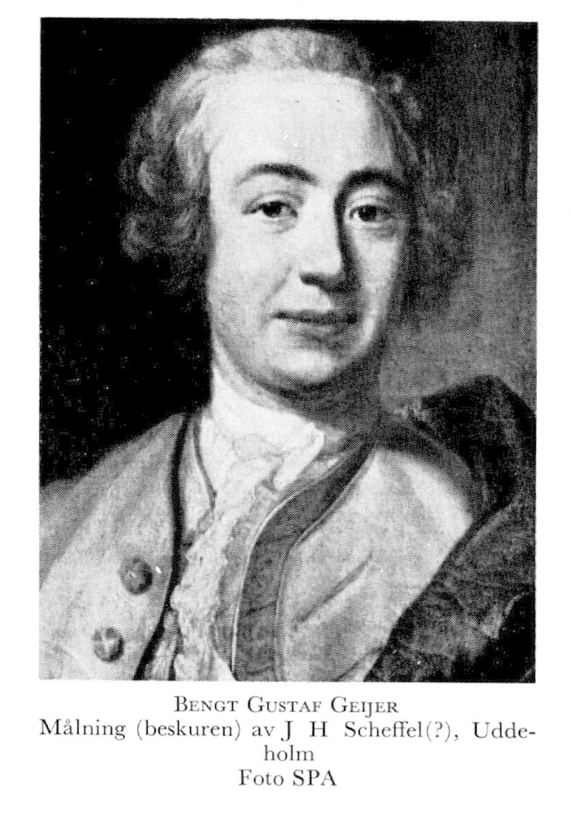 2 Geijer, Bengt Gustaf, son till G 1 i hans 2:a g, f 1 april 1724 på Risberg, N Råda (Värml), d 23 mars 1817 på Ribbingsfors, Amnehärad (Skar). Inskr vid UU 24 okt 43, auskultant i Svea hovrätt 45, i bergskoll 31 okt 49, hovsekr:s titel s å, disponent för Uddeholmsbolaget 68–04.