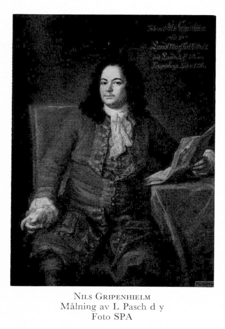 2 Gripenhielm, Nils, son till G 1 i hans 1:a g, f 1653, begr 27 mars 1706 i Falun. Inskr vid UU 4 sept 61, hovråd 13 mars 74, dir över KB 4 jan 76, lagman på Öland 27 jan 81, förflyttad till Östergötland 1 febr 82 o till Uppland 22 okt 86, landshövd i Kopparbergs län 15 jan 92, lantmarskalk vid riksdagen 97, k råd o president i Bergskoll 06 men dog före tillträdet.