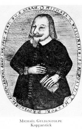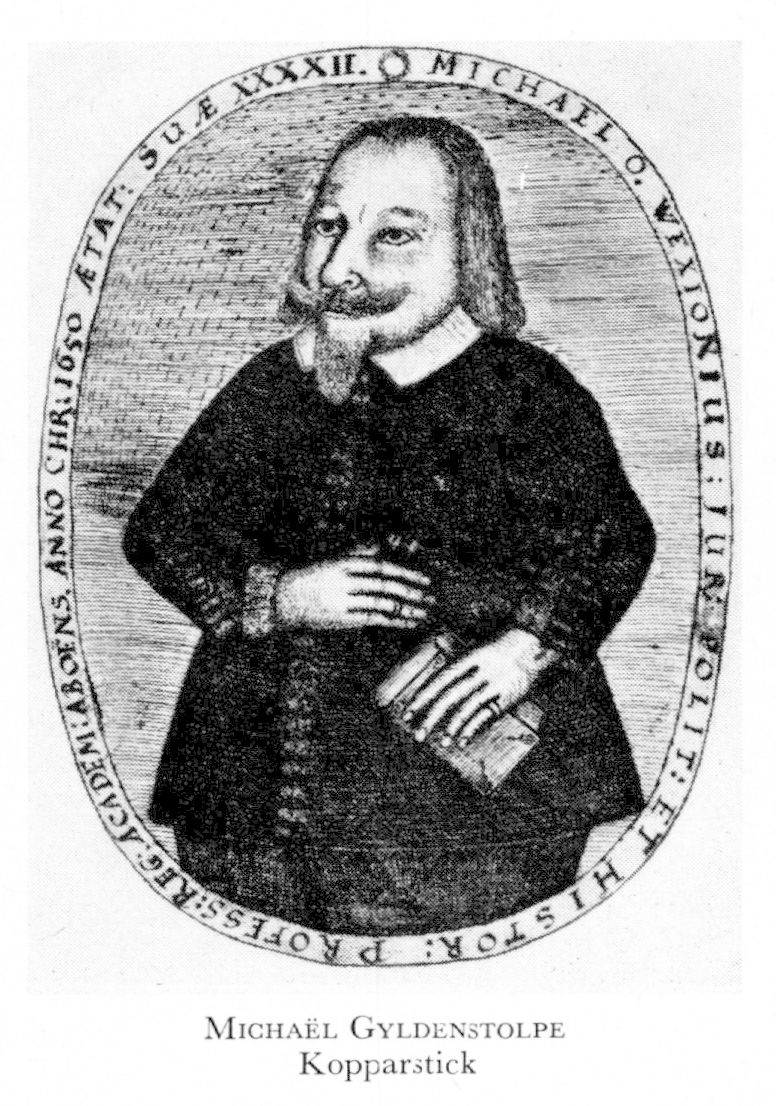1 Gyldenstolpe, Michael Olsson Wexionius, f 16 febr 1609 i Pjätteryd (Kron), d 28 juni 1670 i Åbo. Föräldrar: kaplanen, sedermera hospitalssysslomannen Olof Olai Angermannus o Gunilla Erlandsdtr. Elev vid Växjö katedralskola 17, inskr vid UU 19 april 26, mag där 13 mars 32, inskr vid univ i Marburg 10 jan 34, i Leiden 30 maj 36, sekr hos riksamiralen Karl Karlsson Gyllenhielm 36, rektor vid katedralskolan i Växjö 19 mars 38, politices et historiarum prof vid Åbo akad 26 mars 40, dessutom eo juris prof 15 aug 47, prom jur utr dr 14 juni 50, adl 19 okt 50, assessor vid Åbo hovrätt 21 juni 57 (tilltr 16 febr 58), häradsh i s Österbotten 11 nov 63, medl av lagkommissionen 9 juni 65, häradsh i Vättle o Askim med Ö Hisingen (Älvsb) 30 aug 67.