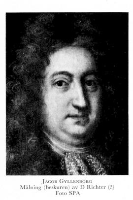 1 Gyllenborg, Jacob, före adl Wolimhaus, f 7 mars 1648 i Uppsala, d 11 mars 1701 i Sthlm, bisatt där (Nik), begr i Uppsala domkyrka. Föräldrar: apotekaren Simon Wolimhaus o Catharina Andersdtr Brandt. Inskr vid UU sept 59, kommissarie vid kammarrevisionen 2 nov 74, assessor där 22 dec 76, adjung till generalmajor L J Wittenbergs kommission ang Östergötlands o Smålands kavallerireg: en 17 okt 77, led av kommissionen till Östergötland o Södermanland 25 resp 26 okt 77, led av kommissionen till Uppland o Västmanland 7 maj 78, led av kommissionen till Närke o Värmland 3 aug 78, adjung till riksskattmästare Sten Bielkes kommission till Kopparberg o Bergslagen (tillsatt 3 dec 78) 79, led av kommissionen för likviderande av Joel Gripenstiernas o hans bröder Daniel o Nils Gripenmarcks räkenskaper 22 juli 80, adl 20 sept 80, led av reduktionskommissionen 9 dec 80 o av likvidationskommissionen 16 febr 81, actor causae vid stora kommissionen 20 maj 81, direktor i kammarrevisionen 13 dec 81, actor causae vid likvidationskommissionen över stora kommissionens domar ang kollegierna 1 juni 82, led av indelningskommissionen i Uppland 10 jan 83 o av reduktionskommissionen i Uppland med Eskilstuna, Gripsholms o Svartsjö län 18 april 83, kammarråd 8 sept 85, president i likvidationskommissionen sept 85, som kammarråd led (efter att ha frånträtt uppdraget som actor causae) av likvidationskommissionen över stora kommissionens domar angående kollegierna maj 87, led av kommissionen till överseende av actorum causae förrättningar 8 maj 87, kvarstod efter de två sistnämnda kommissionernas fören 7 dec 87 som led av den sammanslagna kommissionen intill dess upplösn 6 juni 00, direktor i reduktionsdeputationen 17 dec 87, led av kammarkommissionen vid behandl av observationsräkenskaperna över amiralitetet o kammarkollegiet 23 jan 88, landsh i Sthlms o Uppsala län 15 mars 89, frih 17 mars 89, lantmarskalk vid riksdagen i Sthlm 93 (utn 30 okt), k råd o greve 22 aug 95, led av defensionskommissionen 7 april 00. Led av ridderskapet o adeln vid riksdagarna 80, 82—83, 86, 89 o 93.