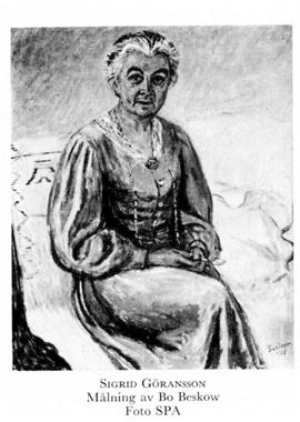 3 Göransson, Sigrid Maria, dtr till G 2, f 23 febr 1872 i Högbo (nuv Sandviken), d 9 okt 1963 där. Inspektris för Sandvikens järnverks sociala inrättn:ar 07–37, led av Sandvikenkretsen av Sv röda korset 15–42, av sv kyrkans diakonistyns sociala utsk 19–35, huvudman i Sv nationalfören mot tuberkulos 20–27, led av ärkestiftets stiftsråd 22–42, av Socialstyr:s sociala råd för arbetarskydd o arbetarfrågor 26–37. — Iqml 14, PS:s GM 1:a storl 15 sept 37. — Ogift.
