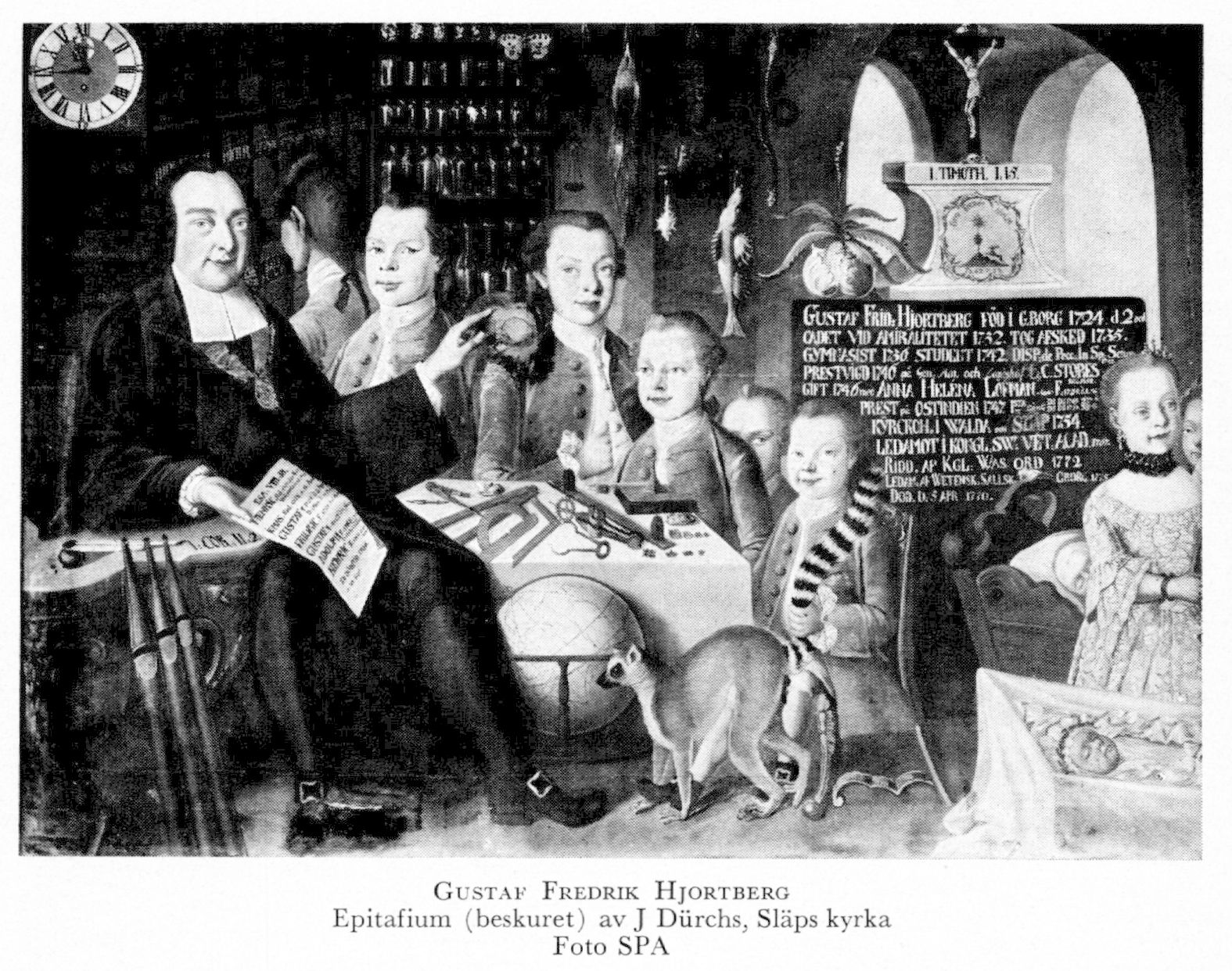 H var ett slags urtyp för frihetstidens upplyste prästman, hemmastadd i naturkunskap och världstillvända praktiska ting, ständigt strävande att öka lyckans summa på jorden. På den märkliga Hjortbergstavlan (av Jonas Durchs, nu i Släps kyrka) ses han omgiven av sin stora familj och föremål, som syftar på hans rastlösa verksamhetsiver: böcker, exotiska naturalier, en levande lemur, orgelpipor, gradbåge, passare och andra redskap.