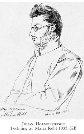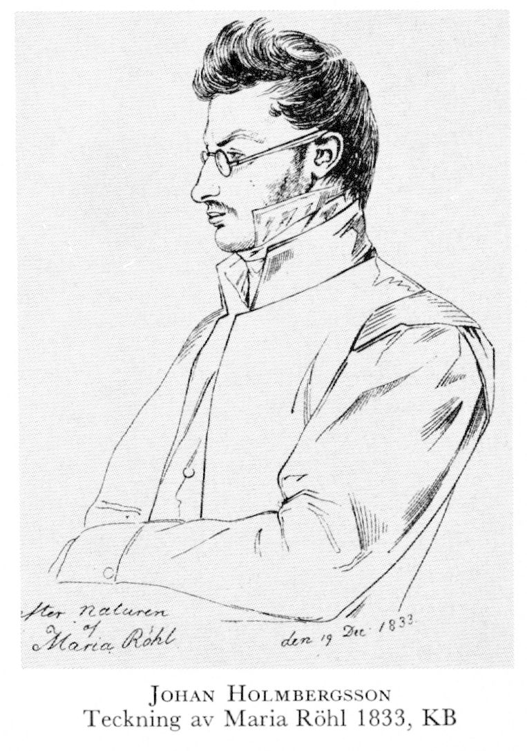 2 Holmbergsson, Johan, son till H 1 i dennes andra g, f 14 juli 1804 i Uppsala, d 16 jan 1835 i Lund. Inskr vid LU 9 okt 20, studerade teckn o måln för univ:ritmästarna A Arwidson o M Körner samt anatomi för A Flodman, elev vid FrKA 23. Tecknare o illustratör. — Ogift.