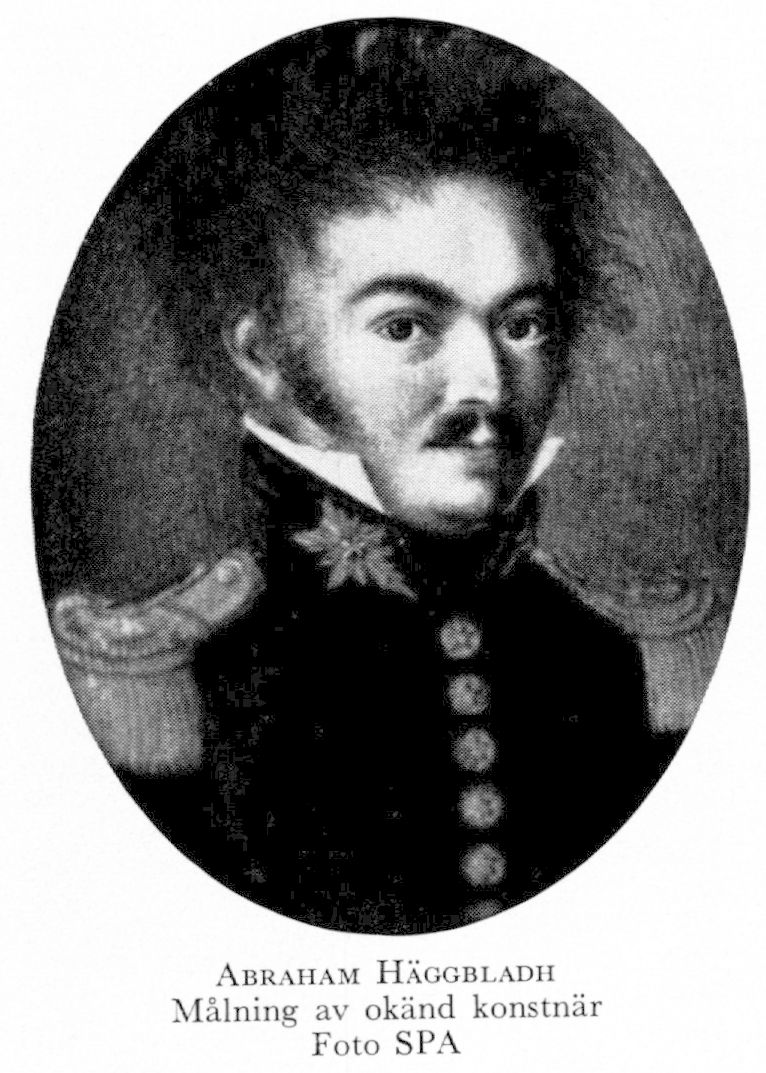 Häggbladh, Abraham, f 1 jan 1789 i Vasa, Finland, d 20 mars 1848 i Sthlm, Finska. Föräldrar: skrivaren Abraham H o Maja Stina Öberg. Student vid Åbo akad 30 sept 07, renritare vid fältmätn:brigaden av ingkåren 23 nov 12, underlöjtn där 6 april 13, officersex 19 mars 19, löjtn 30 juni 20, kapten 4 juli 28, major i armén 10 febr 37, vid topografiska kåren 3 febr 43, överstelöjtn 28 nov 45. — LKrVA 31, LVA 46.
