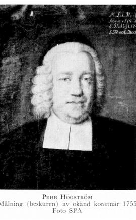 Högström, Pehr, f 12 nov 1714 i Selånger, Vnl, d 14 juli 1784 i Skellefteå. Föräldrar: borgaren o handelsmannen Mårten Ersson H o Ingeborg Persdtr. Inskr vid UU 25 sept 33, disp pro exercitio 38, FK maj 40, missionär i lappmarken 41, prästv i Sthlm 12 maj 42, kh i Gällivare 22 nov 42, mag 22 juni 43, inspektor över församlingar o skolor i Torne lappmark 45, kh i Skellefteå 12 dec 48, deltog i riksdagarna 55—56, 65— 66, 69 o 71—72, kontraktsprost 61, preses vid prästmötet i Piteå 7 mars 64, TD vid UU 14 okt 72. — LVA 49 (preses 65).