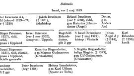 Söner till stamfadern Israel var riddaren Peter Israelsson, ärkebiskop Jakob Israelsson (F 1) och riddaren Erland Israelsson.